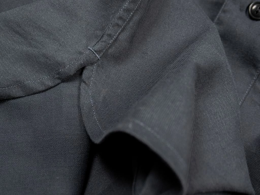 This fabric paired with the raglan sleeves creates a breathable, comfortable shirt perfect for the warm weather. The shirt is finished with custom 2-hole buttons, similar to what you’d find on vintage baseball jersey, made in a hefty corozo.