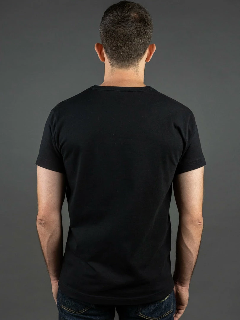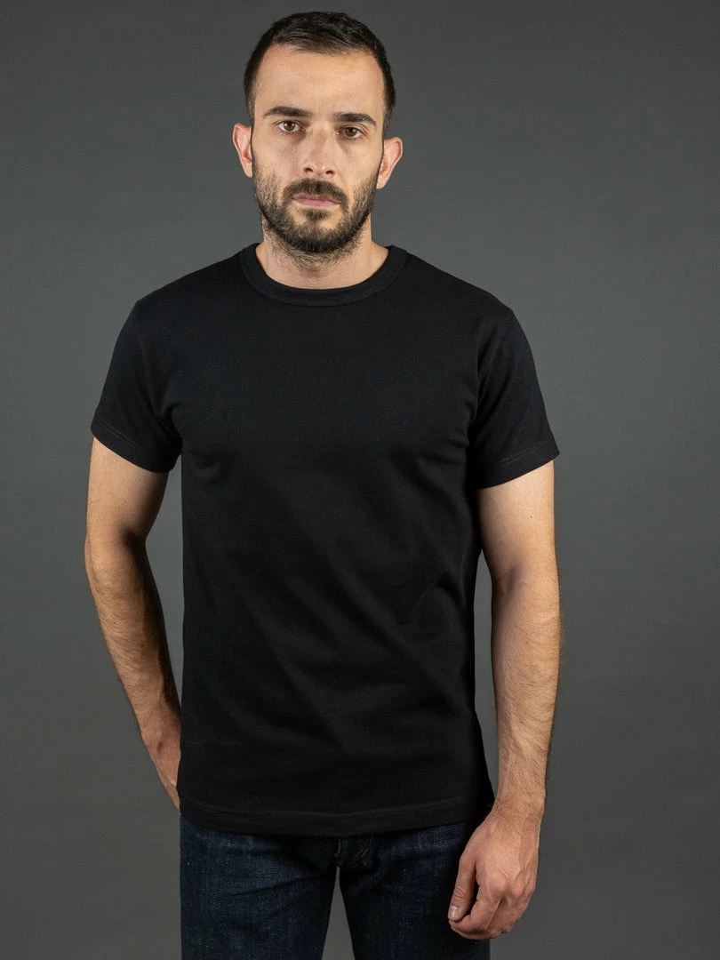 The material is then cut and sewn in San Francisco, CA in the same factory where their jeans are made. The tees have a triple needle coverstitched never-sag collar that stays tight around the neck over extended wears. T-shirts ship in a pack of two.
