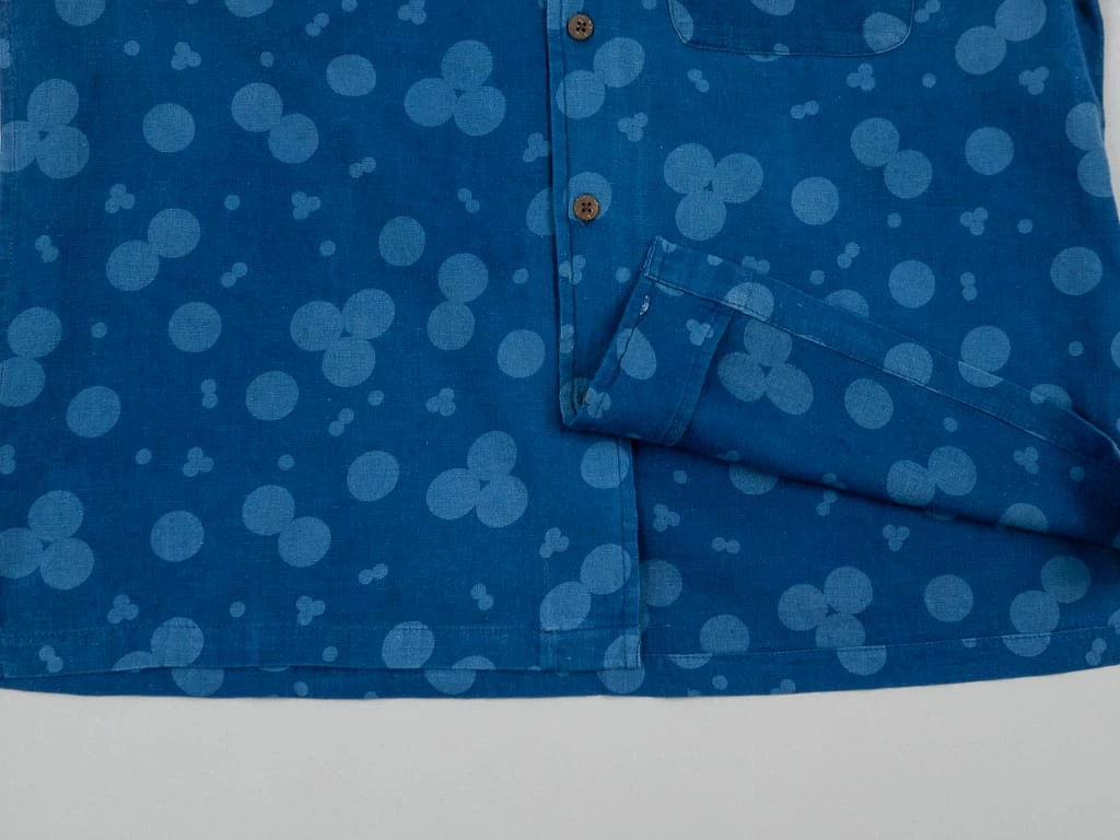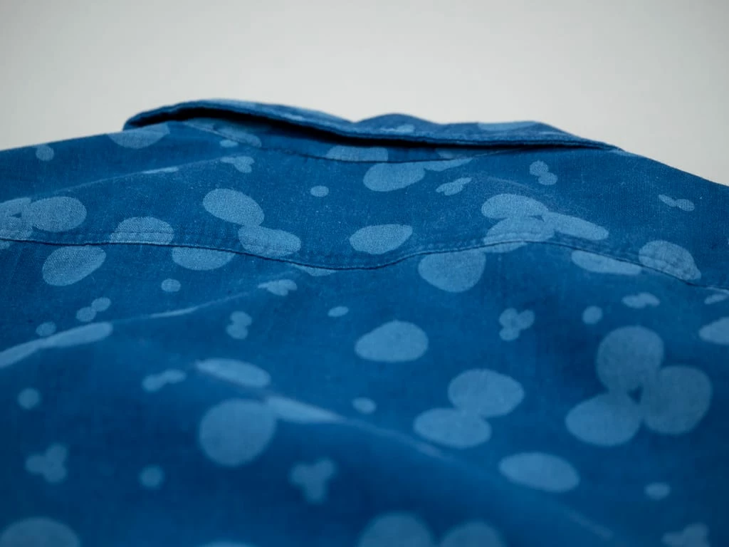 India was the earliest major indigo production centre, and to this day, Indian craftsmen still produce some of the most vibrant and beautiful indigo on the planet. The natural dye on this piece is a lighter shade of blue than traditional Japanese indigos, which tend to be deep and violet in nature. The artisans of this workshop primarily work with natural indigo dyes derived from plants, as opposed to synthetic indigo. We’ve found this process to result in much more aggressive colour loss. If you’re into a fabric that will fade beautifully as it’s worn and washed over the next year or two, this is the one for you.