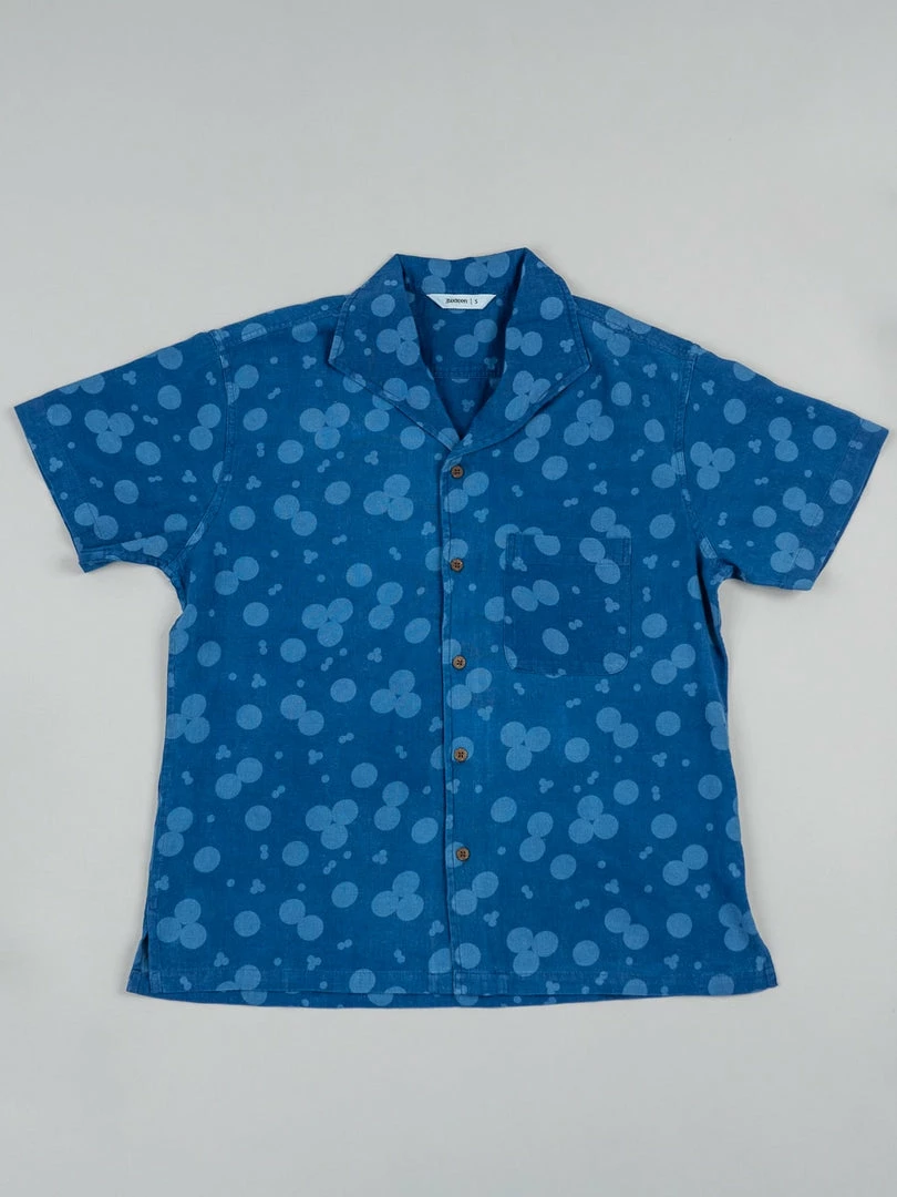 This Leisure Shirt is modelled after vintage 1950’s open-collar vacation shirts. Its confident, open-collar design perfectly captures the season’s laid back energy. The shirt is finished with coconut shell buttons that have a beautiful texture and colour.