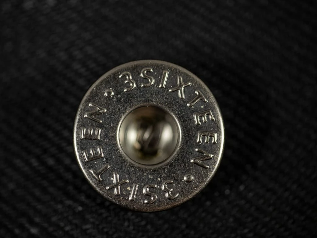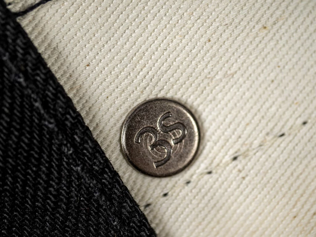 Everything about the jean, from the cut to the buttons, rivets, leather patch, and stitch colour, was selected to demonstrate a level of lasting quality and versatility. 3sixteen use an open-top button with a two-prong backing that prevents button rotation and pull-through. The open-top or “doughnut” style button allows you to easily see that the backing has been fastened securely.