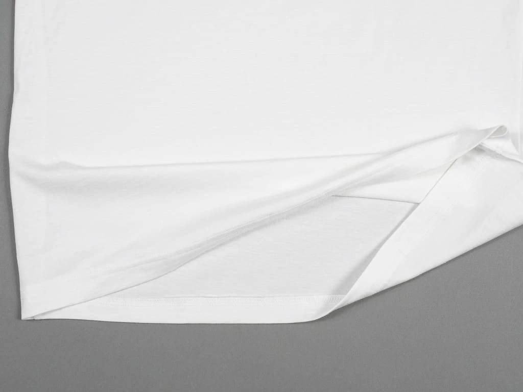 In comparison to 3sixteen heavyweight jersey, these Pima tees have more drape and a softer, silkier hand. The tees also have a triple-needle coverstitched never-sag collar that stays tight around the neck over extended wears and washes. T-shirts ship in a pack of two.
