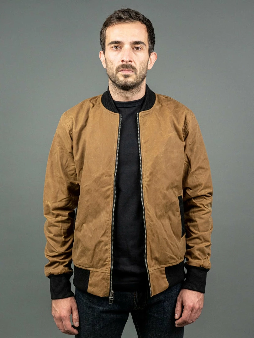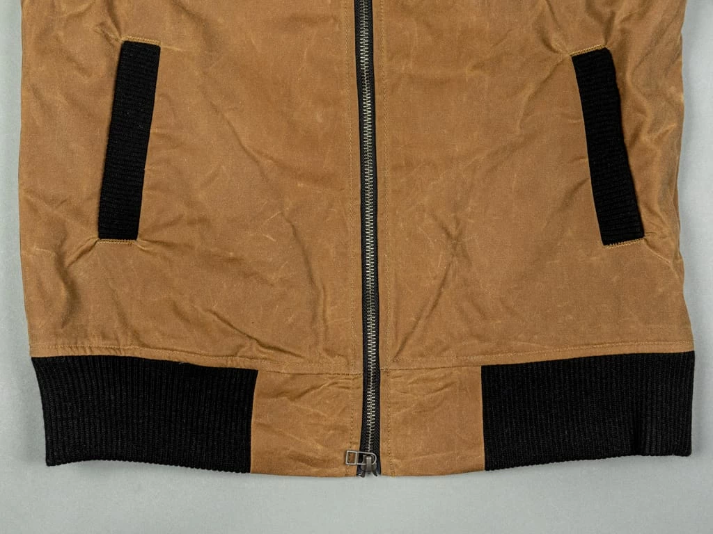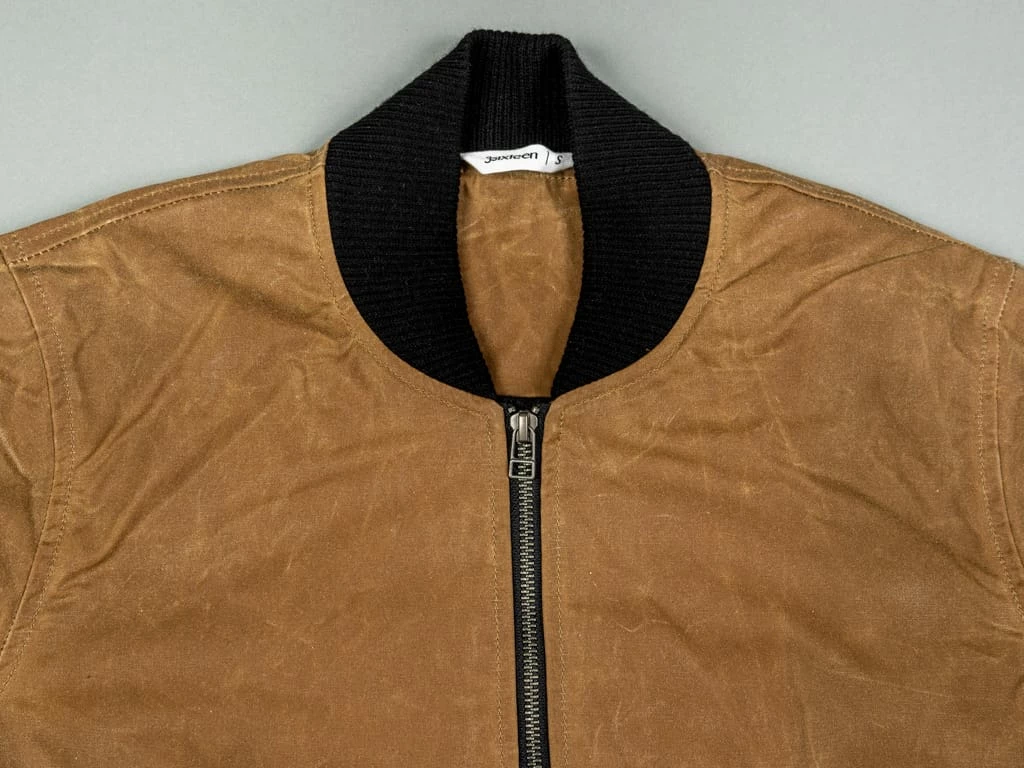The Stadium Jacket has been an outerwear staple that 3sixteen has been making since 2008. Few wardrobe icons give off an aura of success quite like this jacket. It’s a slim cut baseball jacket made of heavy 8oz. Field Tan waxed canvas that repels wind and rain.