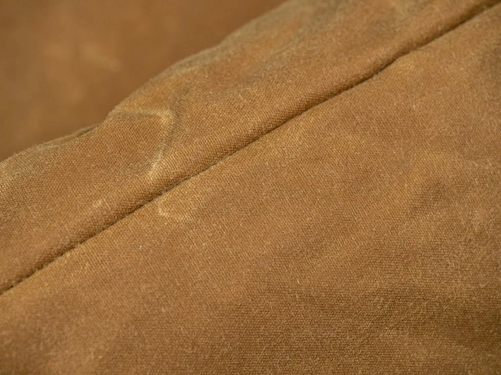 This waxed canvas has been a mainstay in 3sixteen collections for years; It’s an 8oz canvas that’s heavily waxed for water repellency. As it’s worn, the fabric – especially the spice colour – shows wear lines in crease areas where the wax moves around. Years later, the wax will begin to wear off, creating an interesting look that can be left as is or can be rewaxed to bring back its original lustre. This fabric embodies many of our favourite characteristics: it’s functional, hard-wearing, and better looking at year five than it is at year one.
