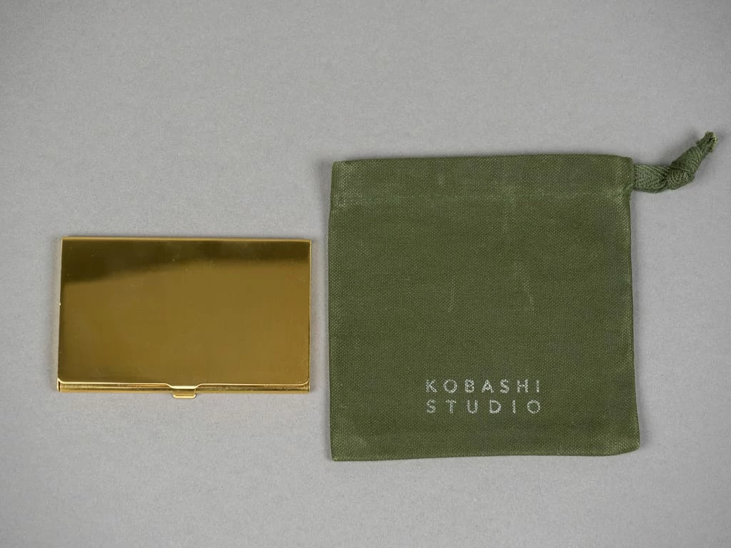 This solid brass business card case and compact mirror are press-moulded in Tokyo. It is hand-crafted and polished by a speciality metal craft company founded in 1953 in Tokyo.