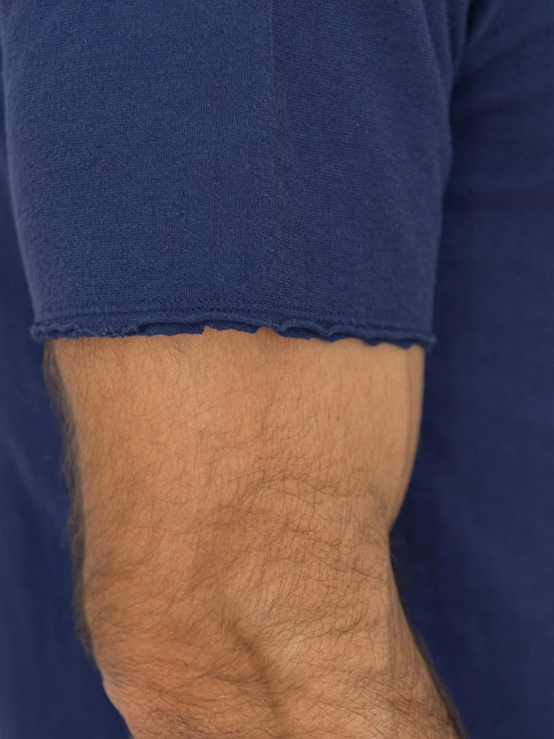 This low wedge crew neck tee features a special cut-off detail that gives it more of a worn-in vibe. The dual-layer fabric is made from a thicker-than-usual SZ (nº40) grafted yarn (yarn with a double twist in both directions to suppress skewing) and is knitted to a good thickness and fluffiness, resulting in a soft and silky knit.