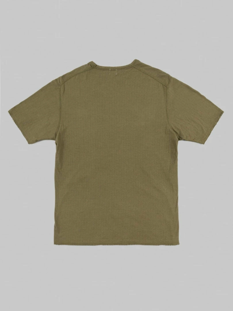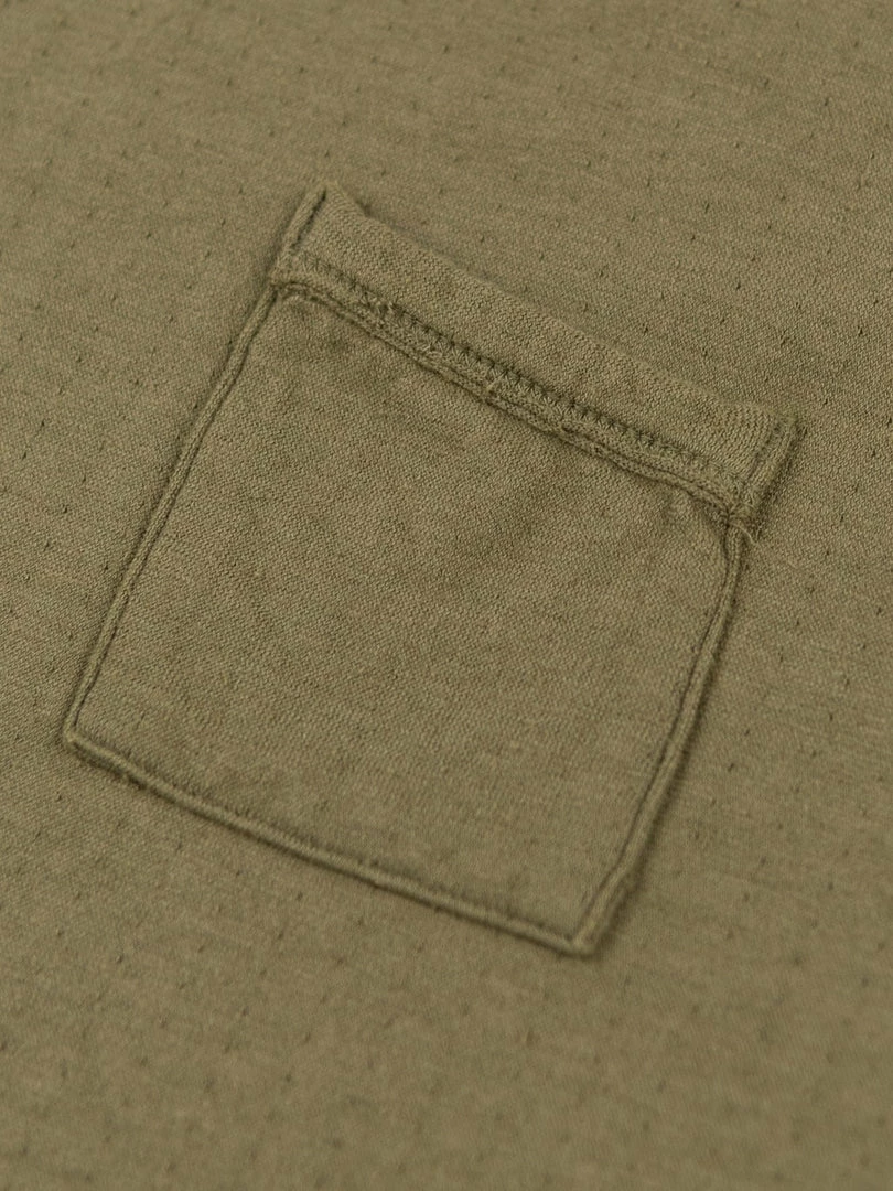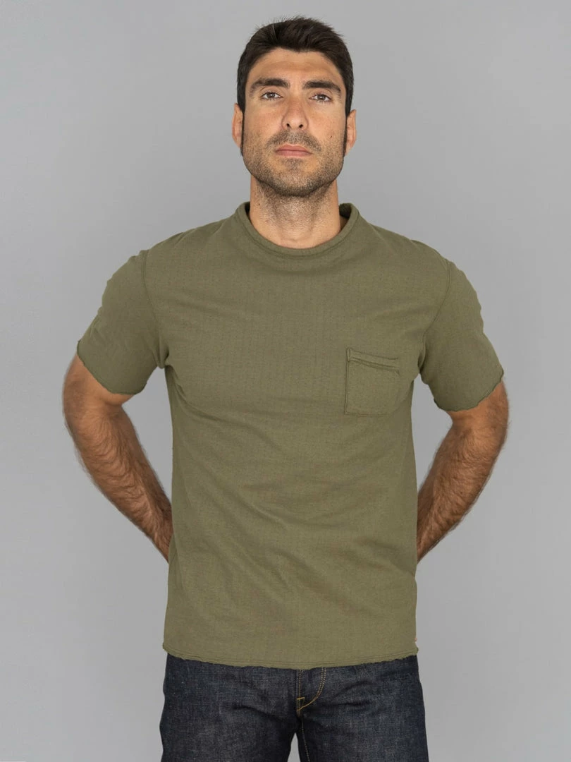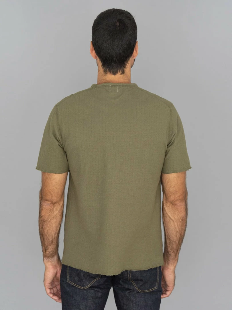 Loop & Weft Dual Layered Knit Raw Edge Pocket Crewneck T-Shirt Army Olive