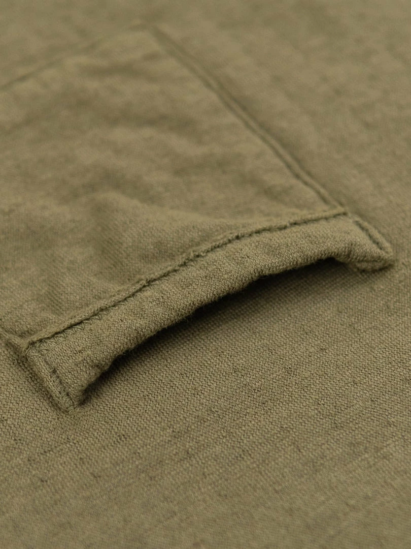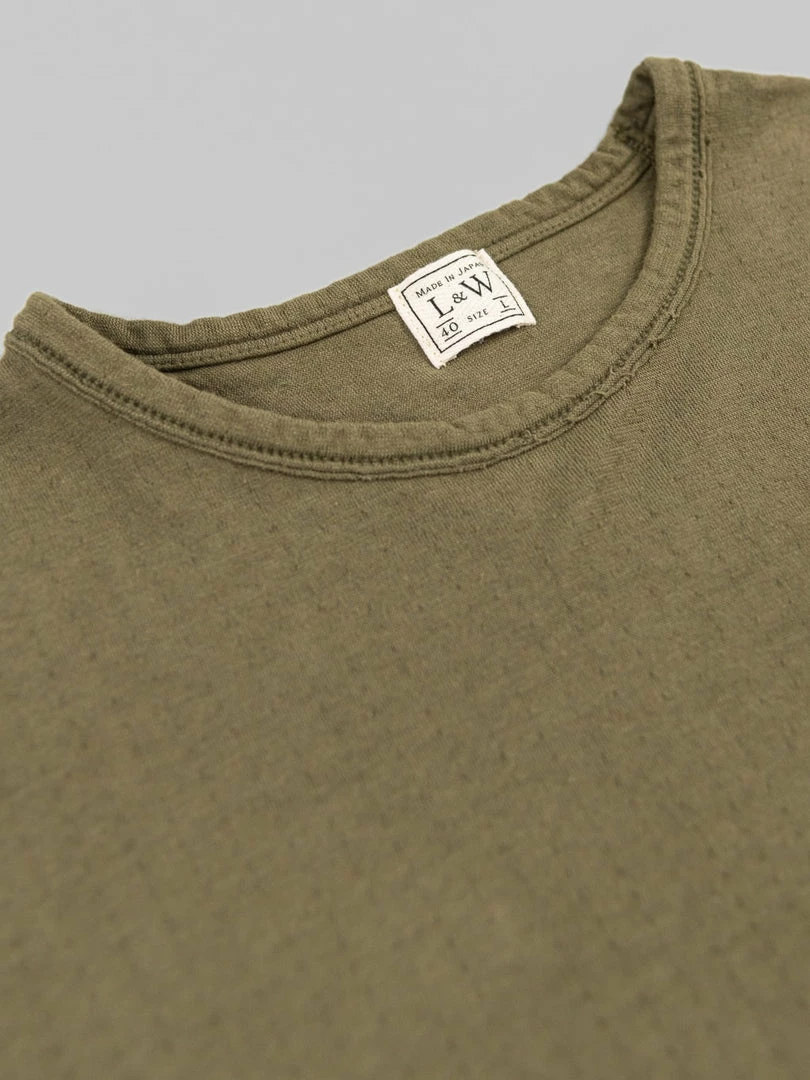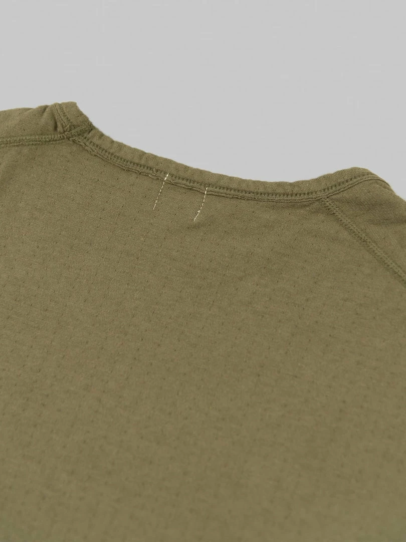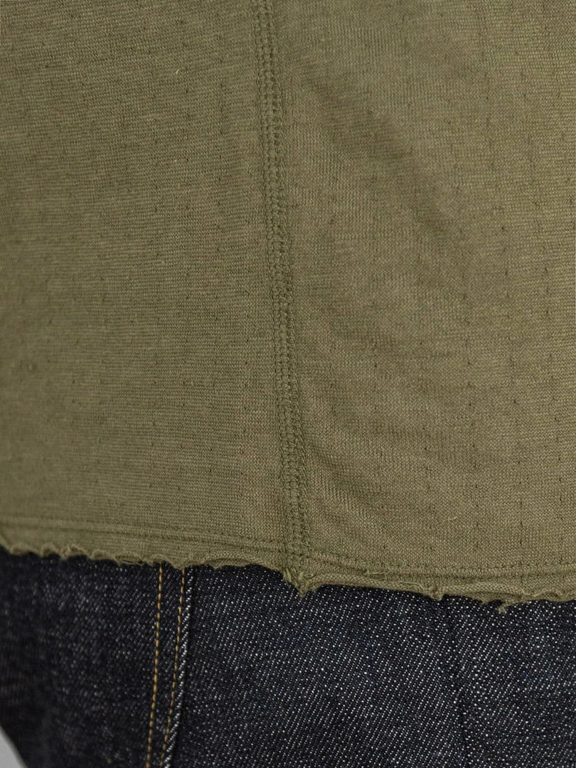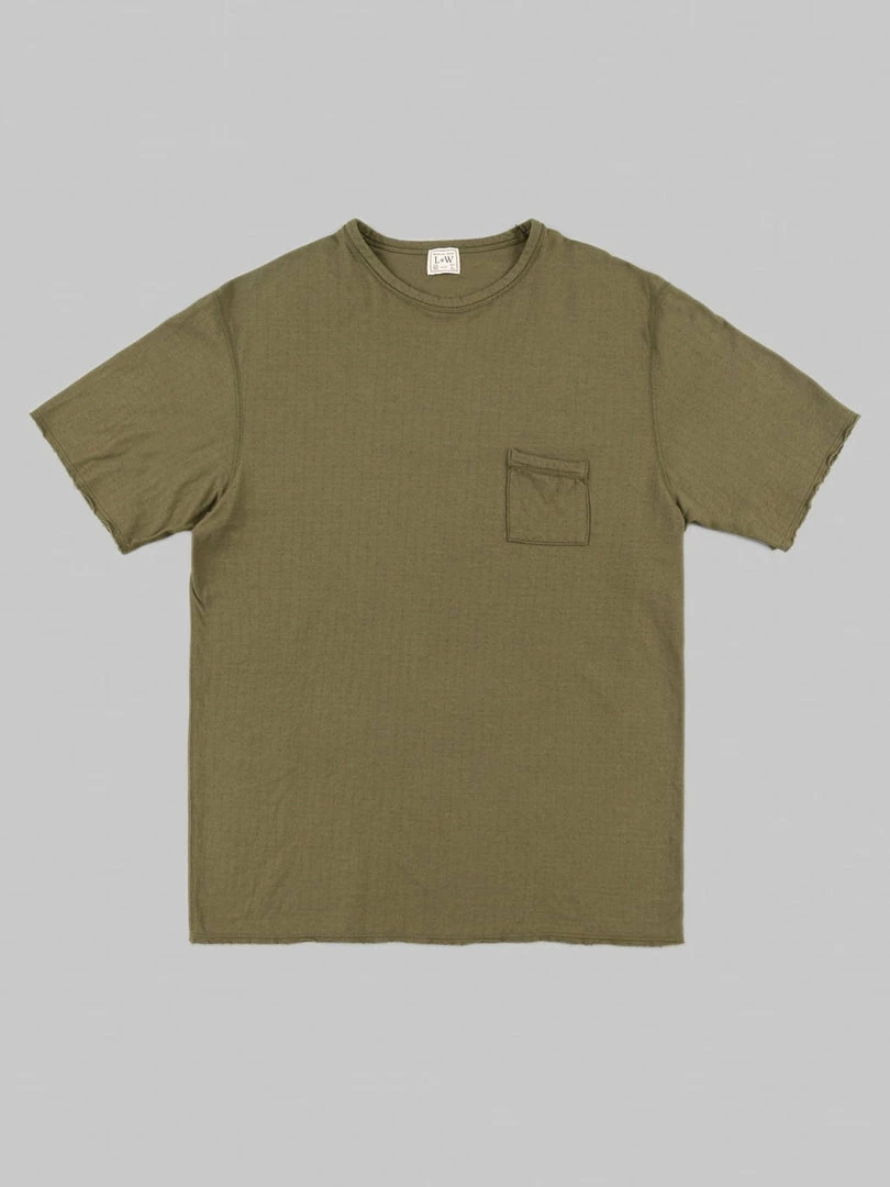 Loop & Weft Dual Layered Knit Raw Edge Pocket Crewneck T-Shirt Army Olive