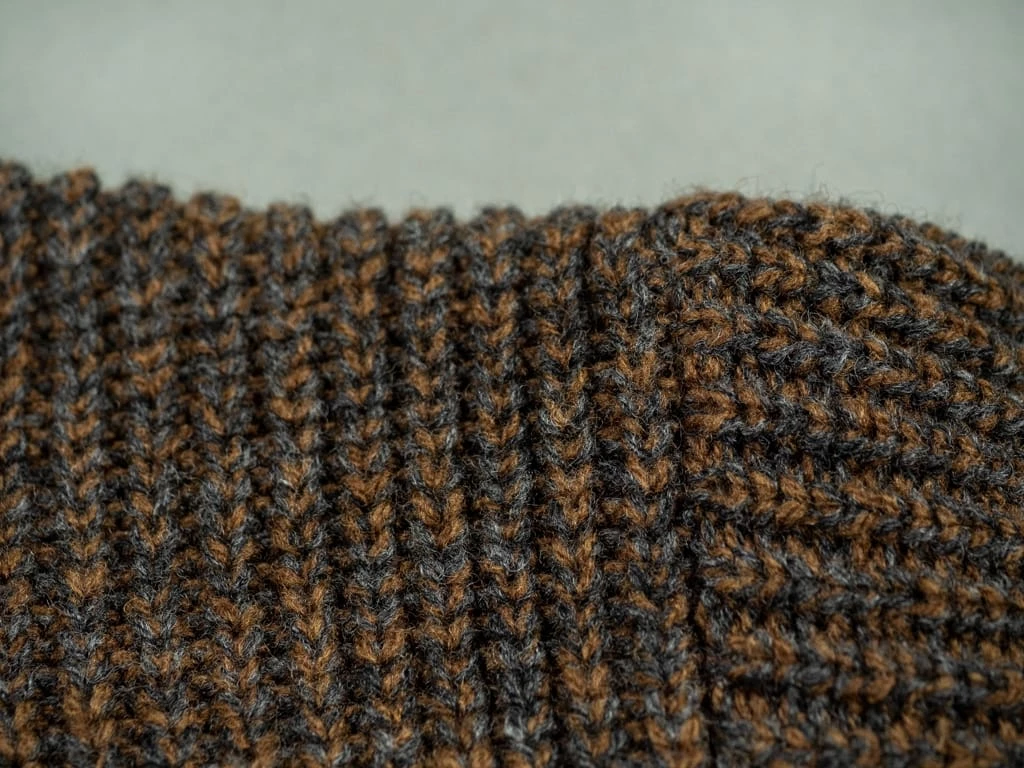 This beautiful piece is warm and comfortable to wear without feeling prickly. The fabric allows you to experience the original texture of wool. Switching the knitting next to each other in a square shape is a complex pattern switching that has become a very rare knitting structure.