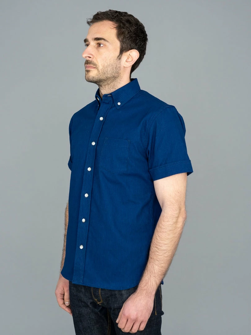 NEW ARRIVALS 3sixteen Short Sleeve Button Down Indigo Sashiko