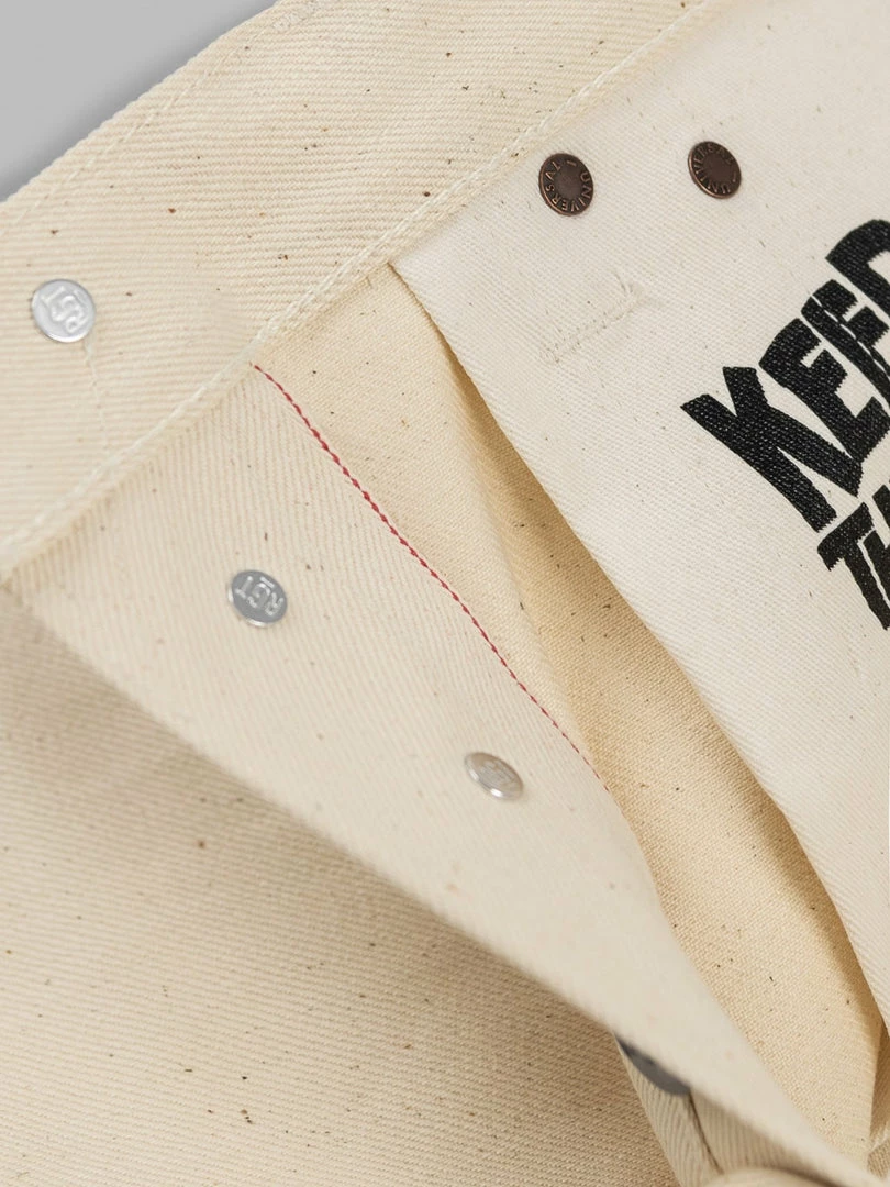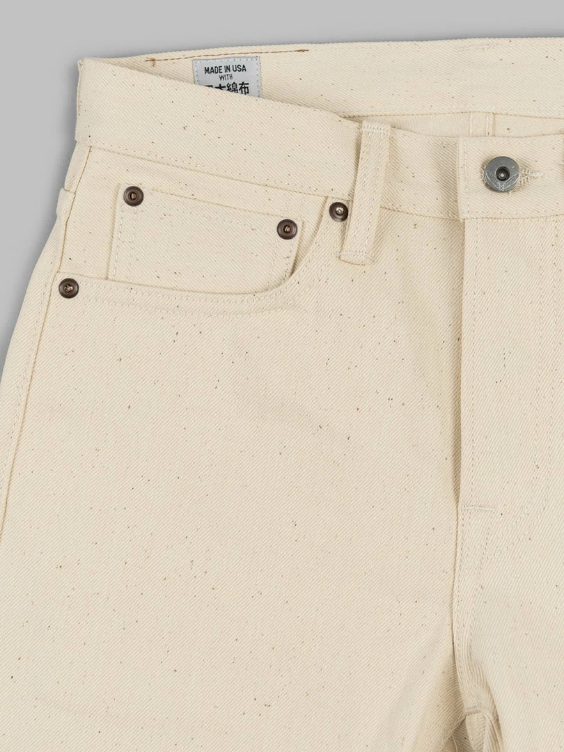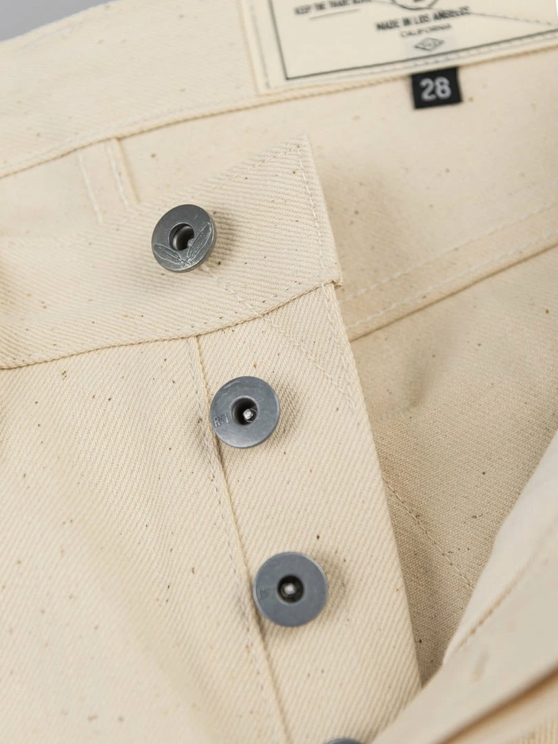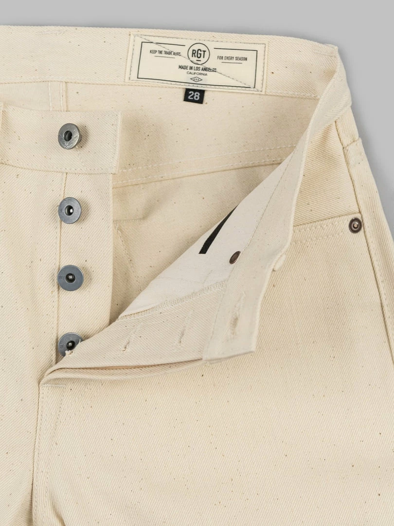 To make these beautiful jeans, RGT has taken 14oz Japanese sanforized ecru denim from Nihon Menpu, highlighting all the beautiful small, brown flecks remnants of the cotton plant.