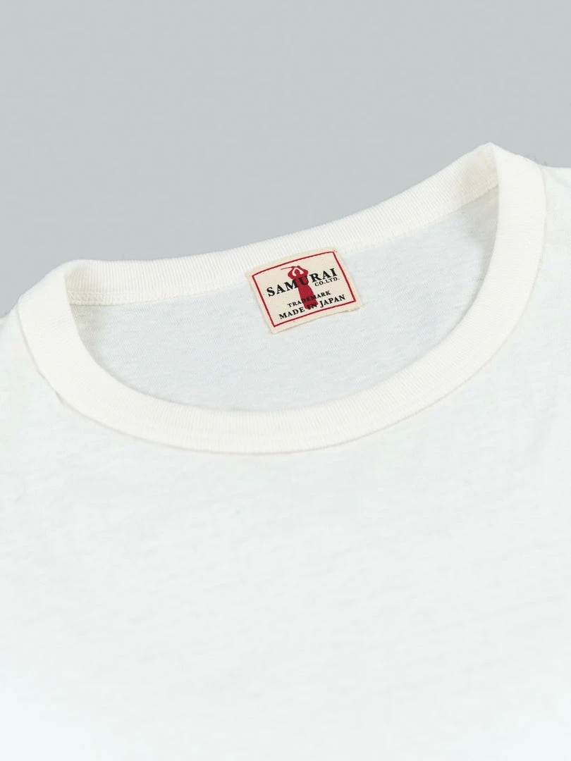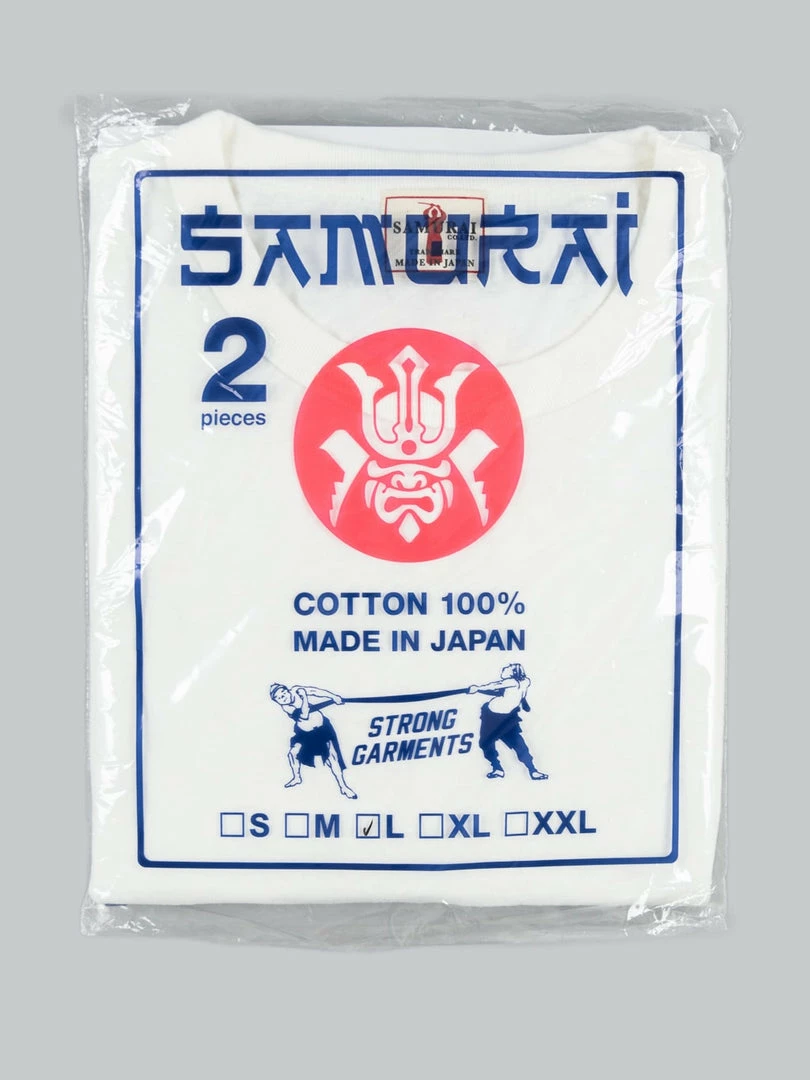 Samurai’s signature tubular-knit style is cut from soft cotton (with a binder neck double-needle stitched) that fits trim and hits high on the bicep, making for a flattering silhouette that looks A-1 on everyone.