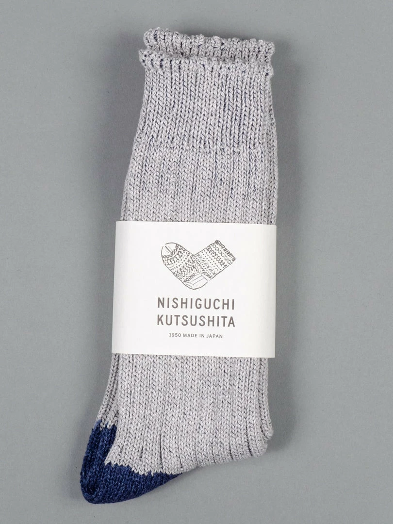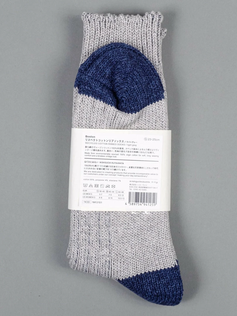 Nishiguchi Kutsushita Recycled Cotton Ribbed Socks Light Grey