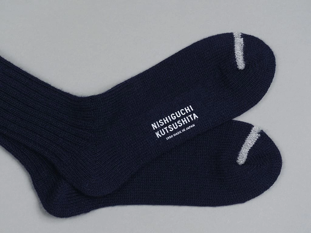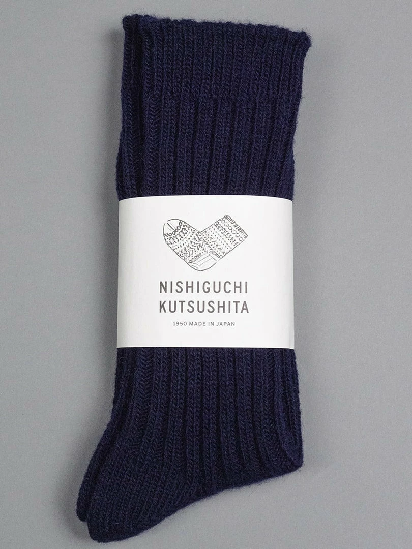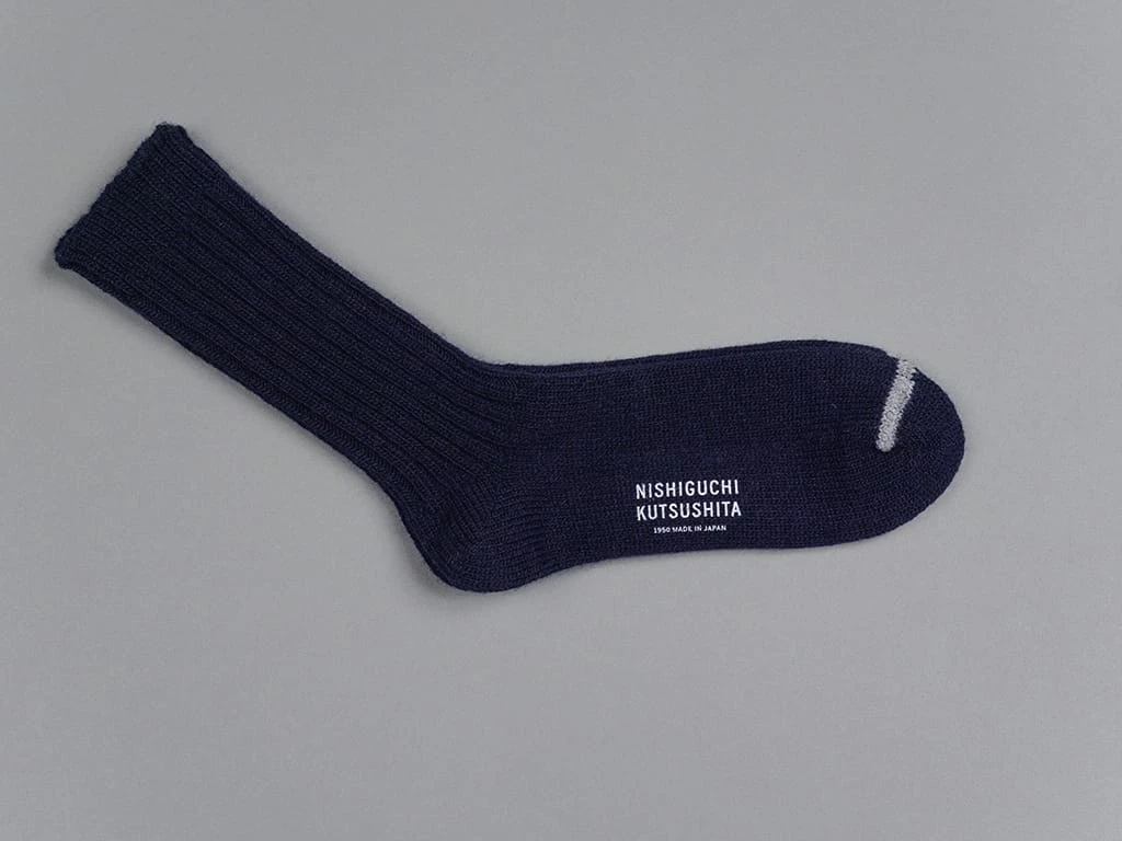 Nishiguchi Kutsushita Wool Ribbed Socks Navy