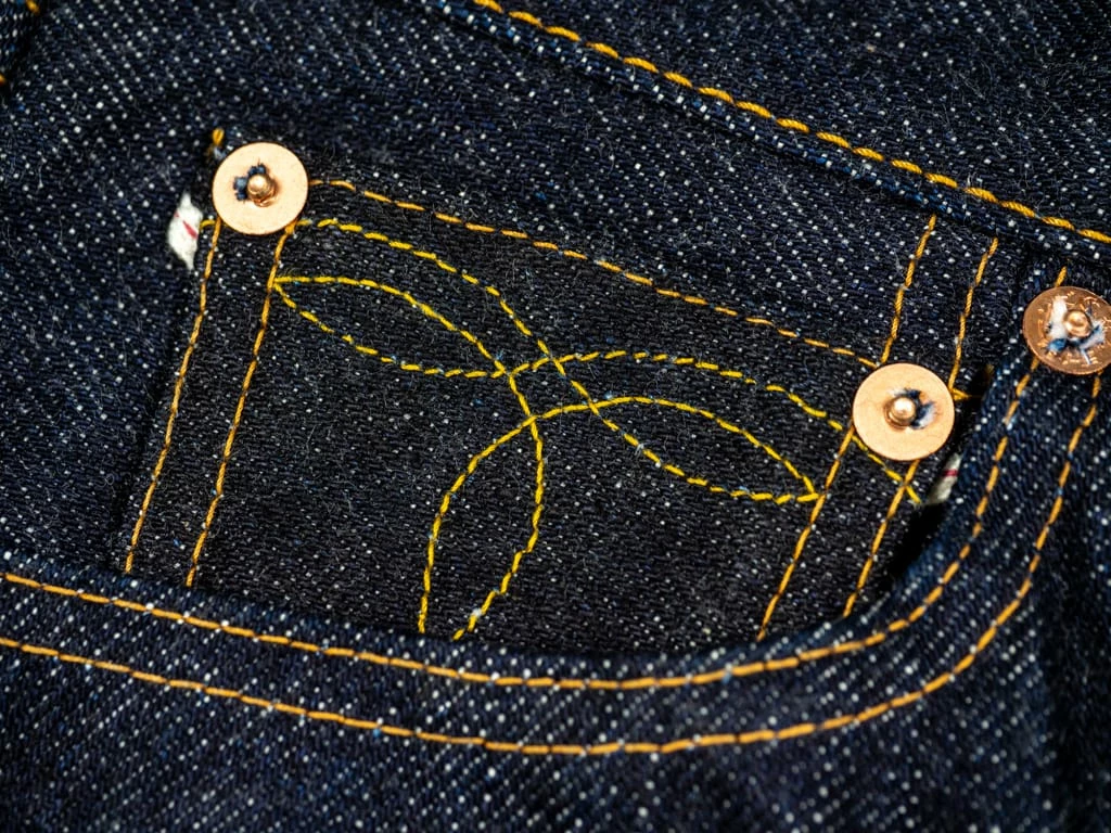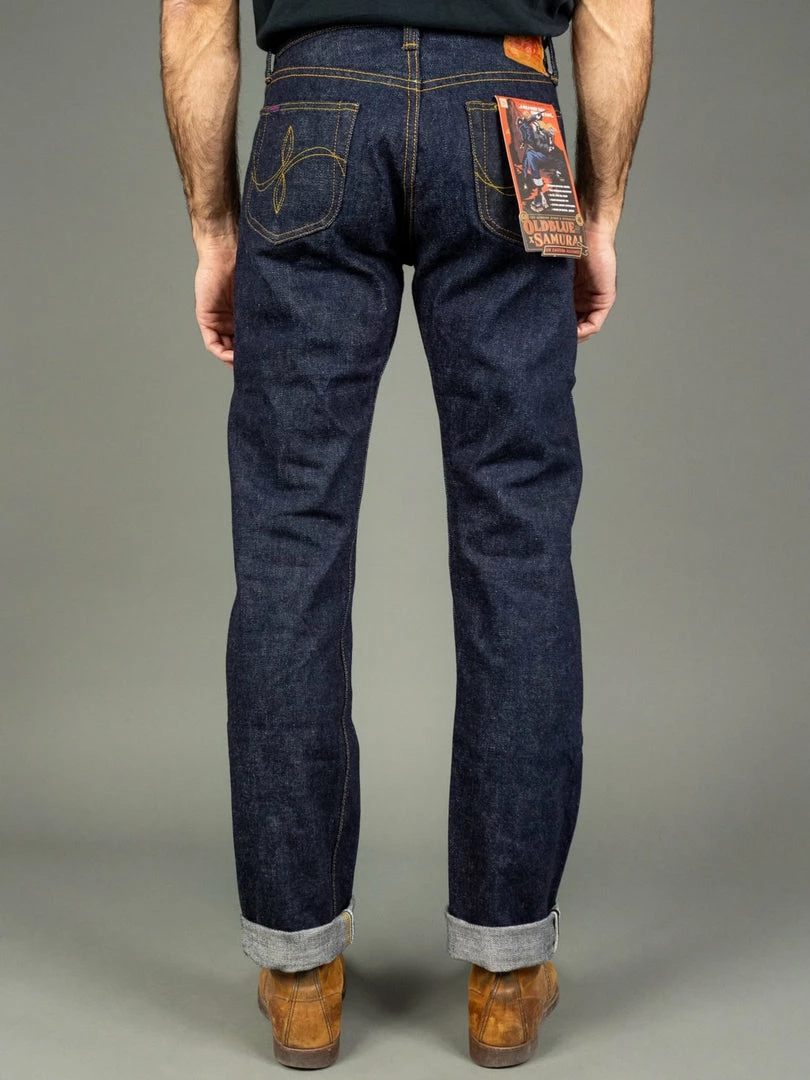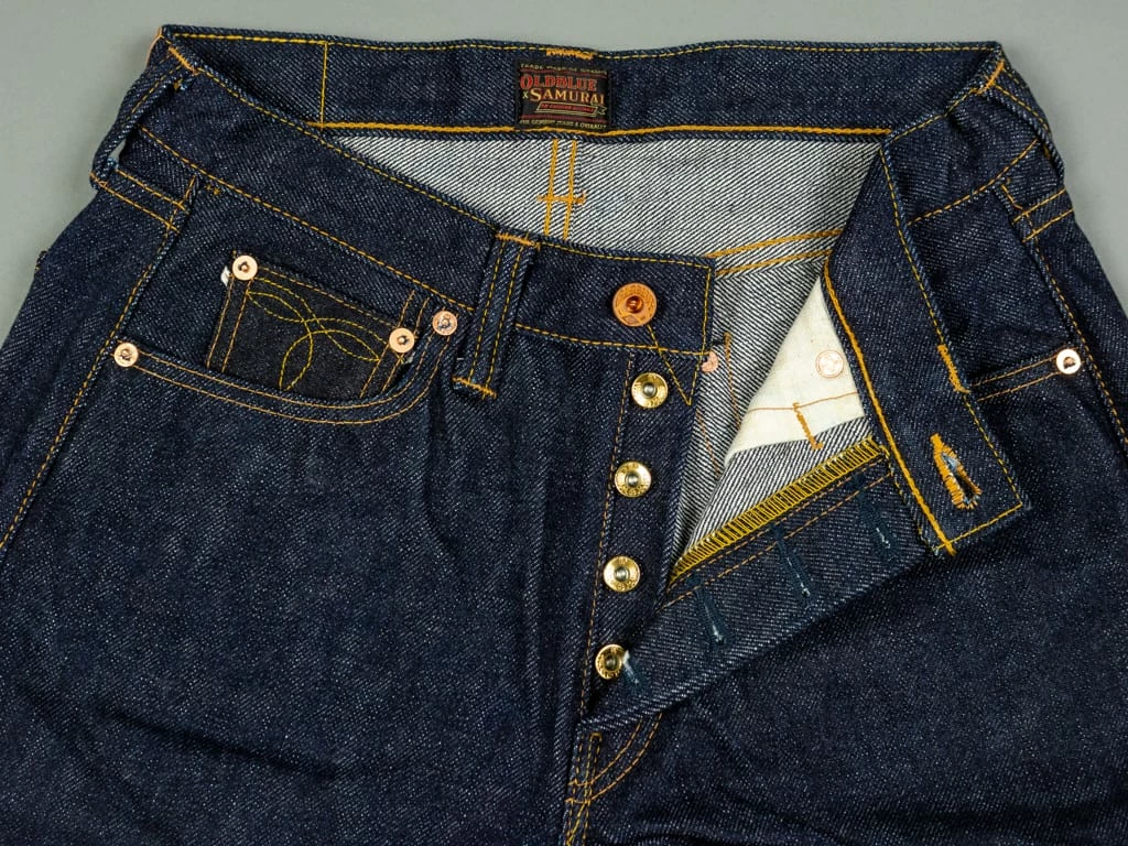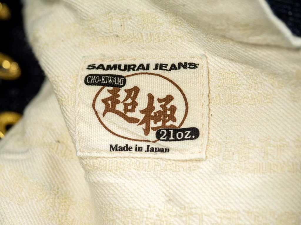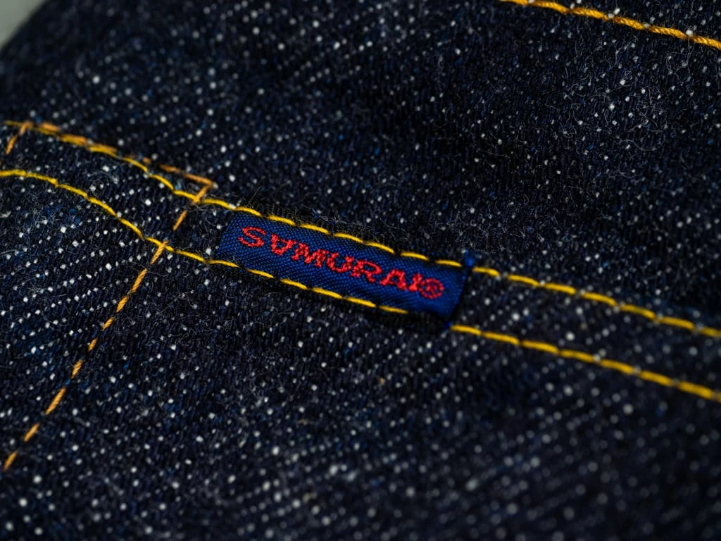- Samurai indigo tab on the left back pocket