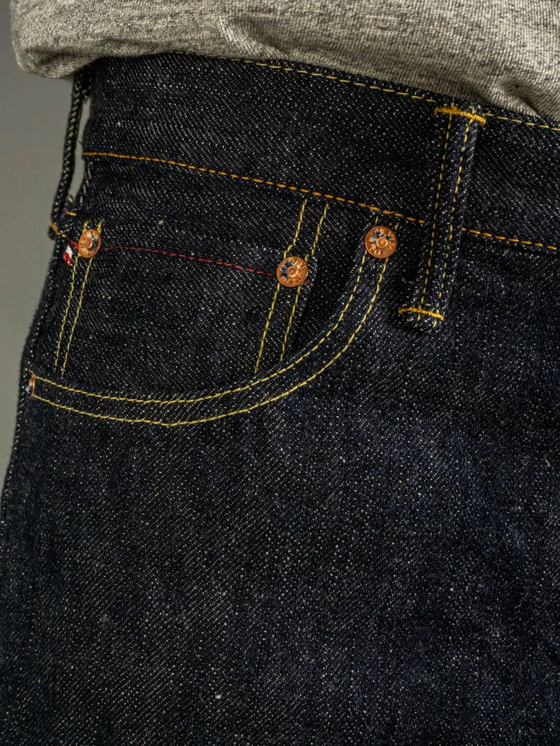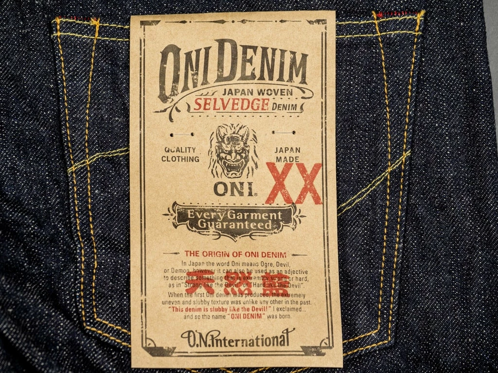 The jeans are made with all the superior-quality ONI details such as copper buttons, high-quality pocket bags, heavy-duty bar tacks and a custom veg-tanned deerskin leather patch with XX stamp.