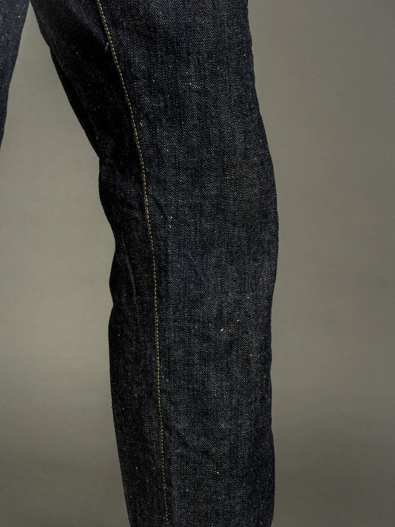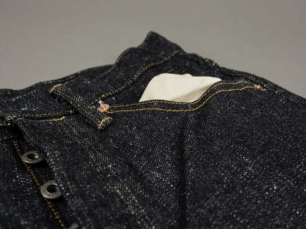 These jeans have been cut from a new natural indigo version of the iconic Oni XX denim, which is well known for its unique texture. This will be the best chance if you are looking for mid to heavyweight denim with a lot of character and a crazy slubby and neppy texture. This 16oz natural indigo denim produces snowy sprinkles of light-coloured highlights that arise gradually over its surface. Oishi-San mixes different kinds of cotton to make this fabric and uses the iconic ONI low tension weaving technique to create a rugged and highly uneven touch. It gets its name from old Levi’s jeans. For the first 17 years between 1873 to 1890, Levi’s waist overalls (as jeans were called then) were known simply as XX.