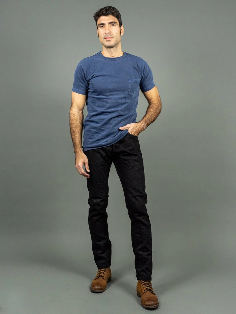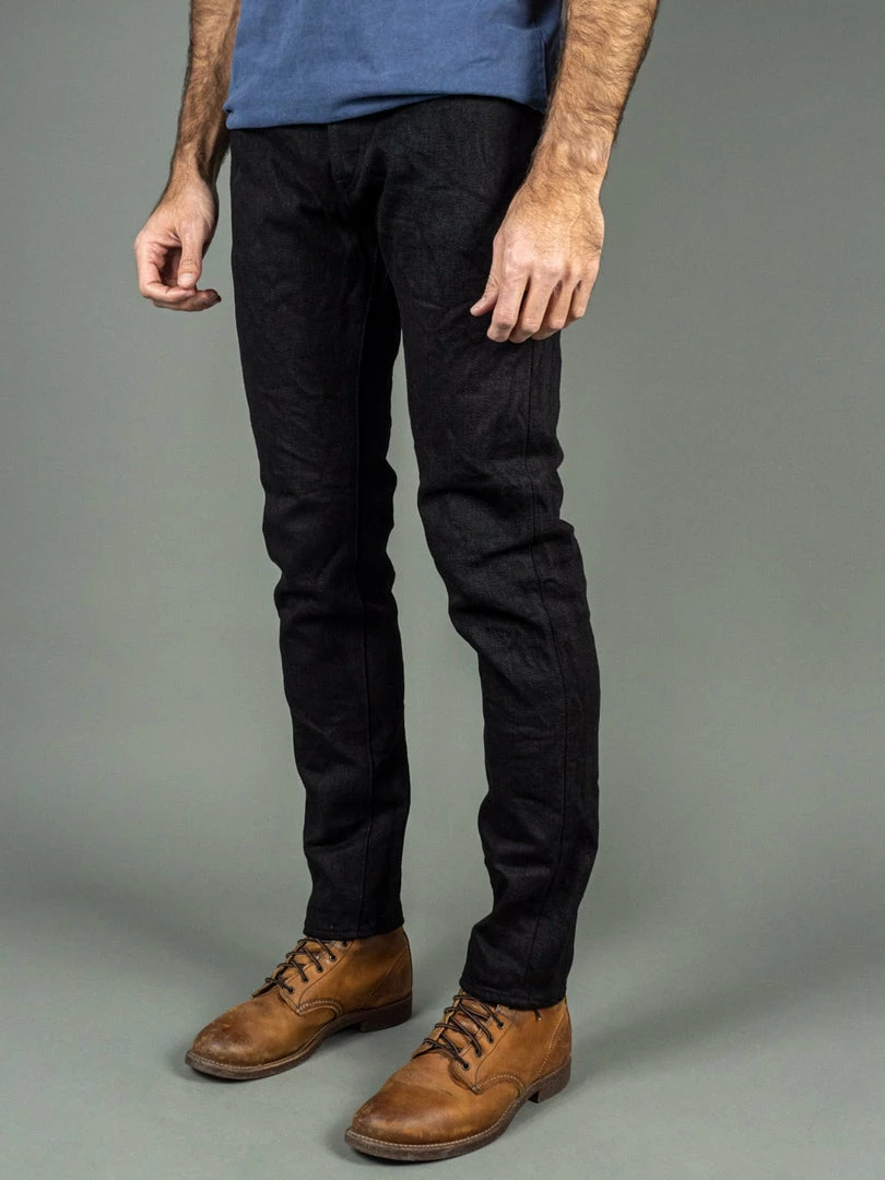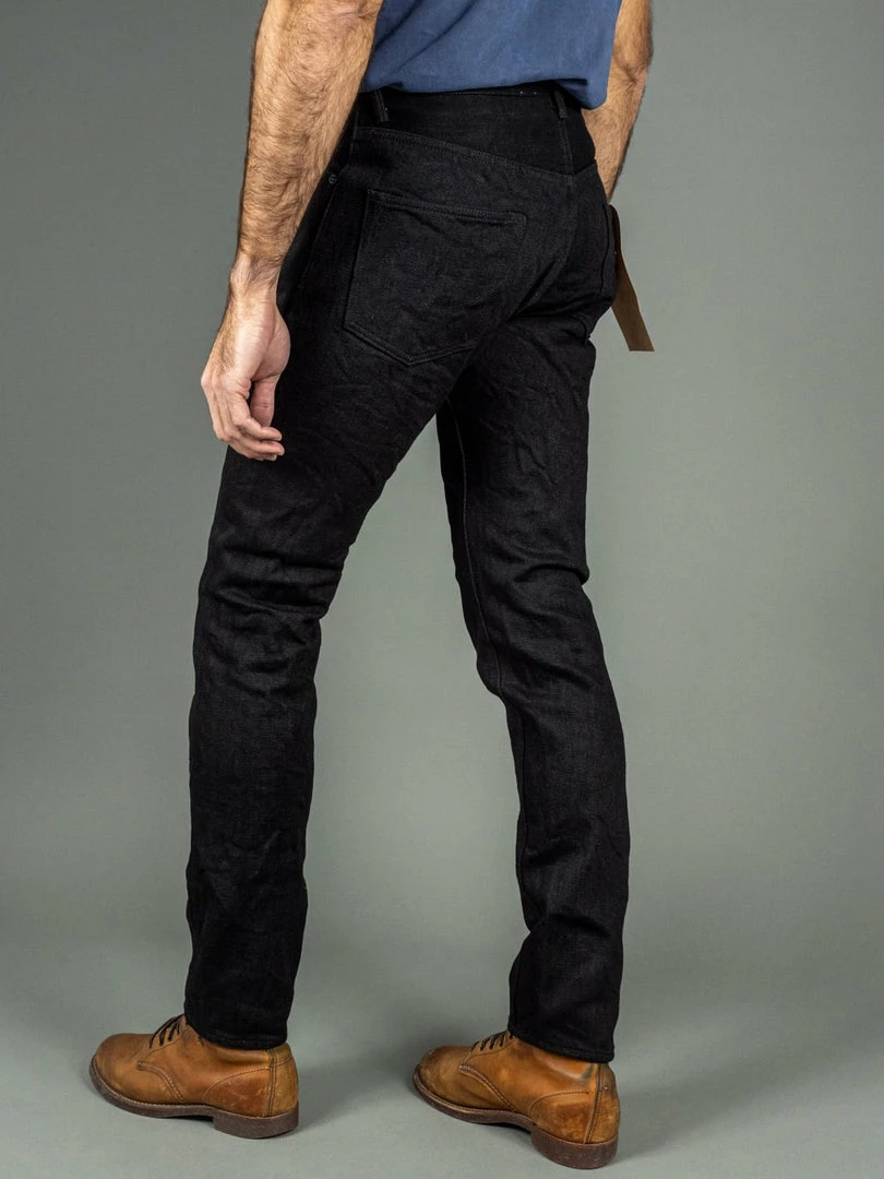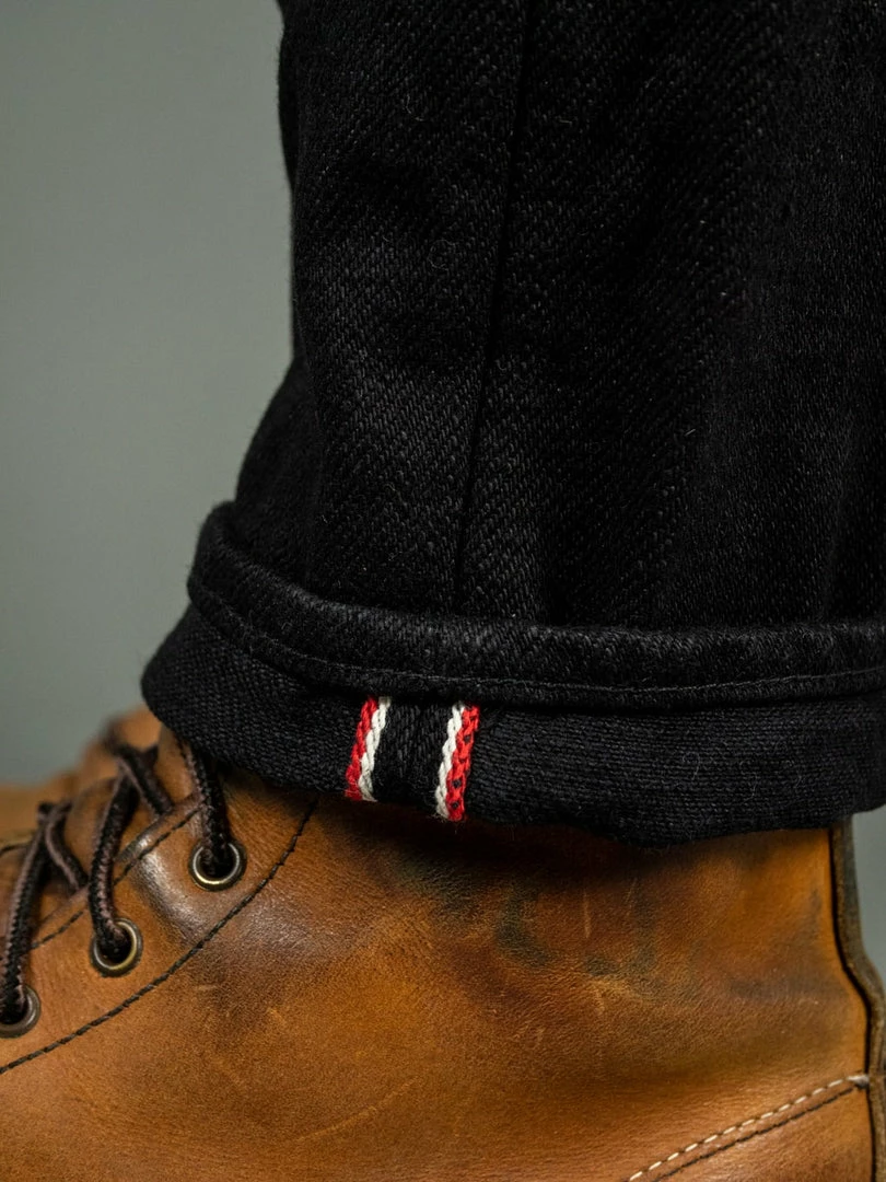 - 20oz unsanforized indigo-black rope dyed Japanese selvedge denim. It is a one-wash version so expect no shrinkage