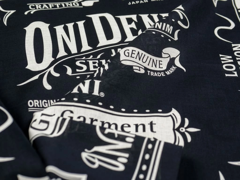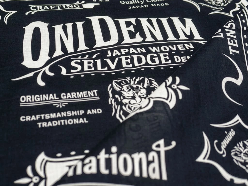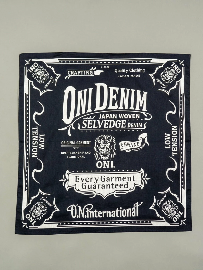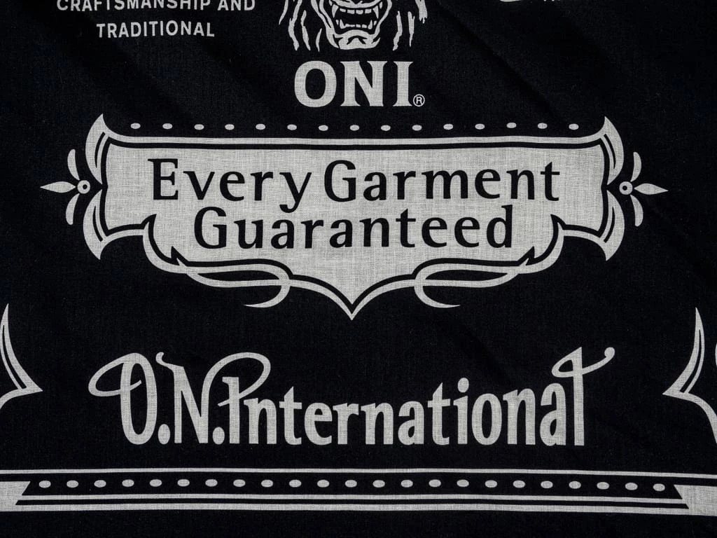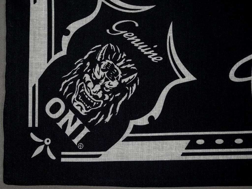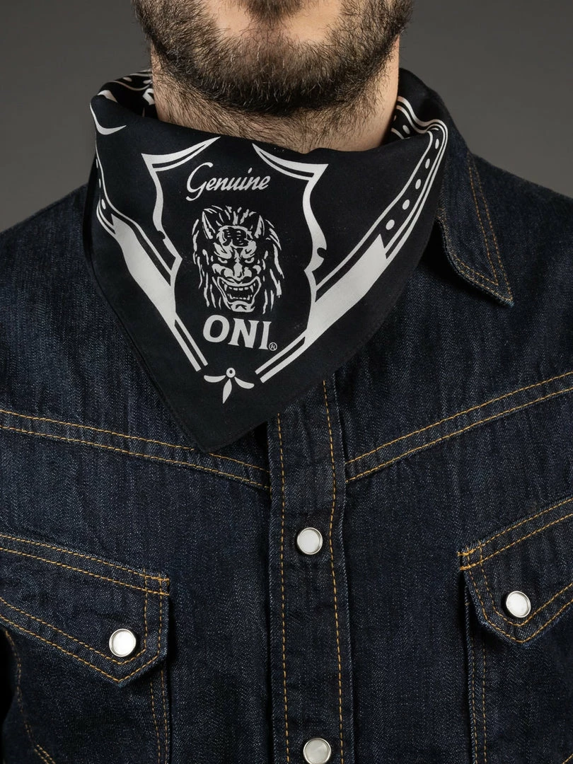 ONI´s black bandana is inspired by vintage American-made cotton bandanas. The graphics reproduce the old-style Americana iconography.
