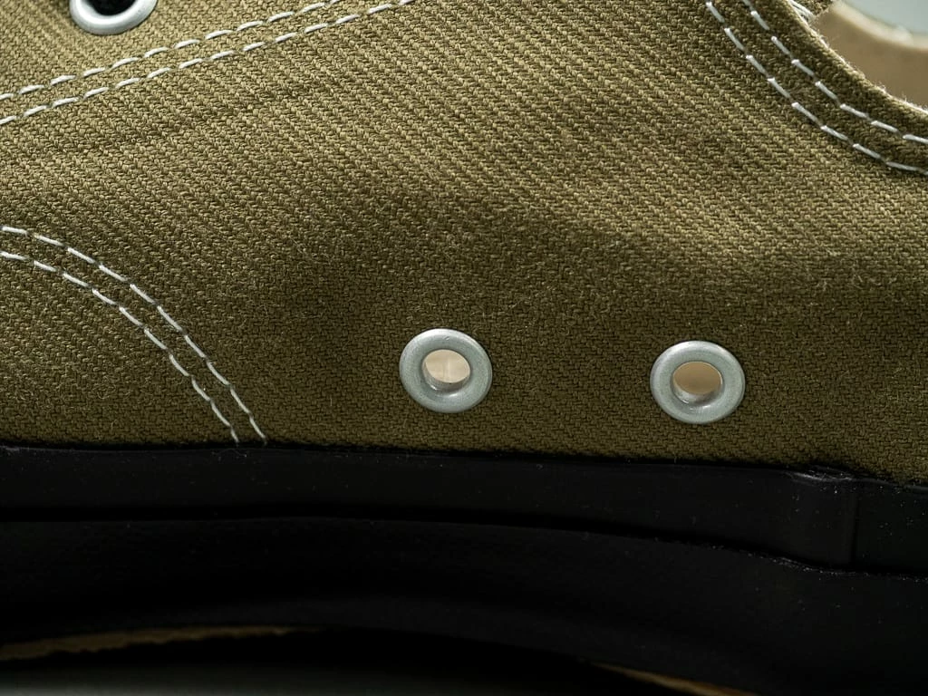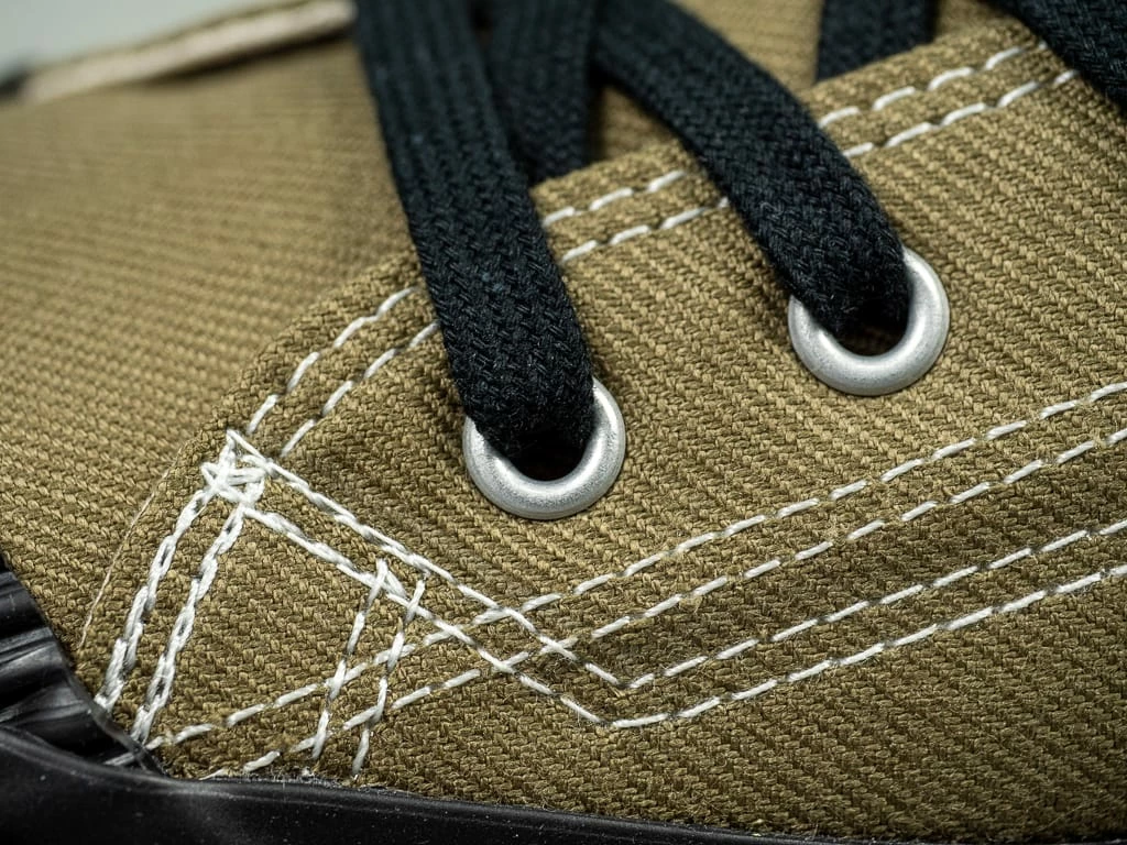 - 100% Hanpu cotton canvas upper woven in Kojima, using an old Toyoda GL9 shuttle loom