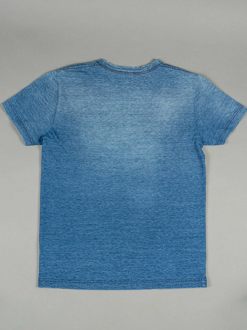 Do you need a solid indigo-dyed T-shirt but don’t want to wait four years for it to fade? This beauty is made with the same textured fabric of the standard indigo version, but it has been carefully treated to produce an excellent sun-faded effect. This 100% long-staple cotton t-shirt was dyed with pure indigo before being completely faded away almost immediately after being dyed.