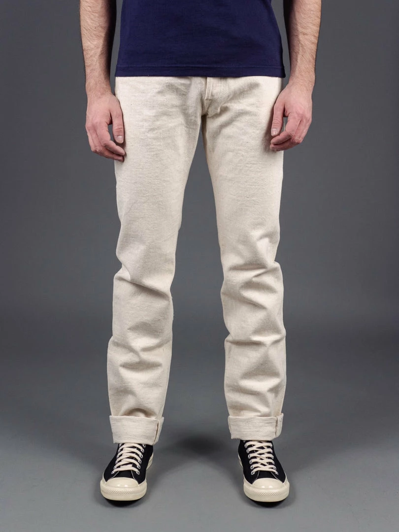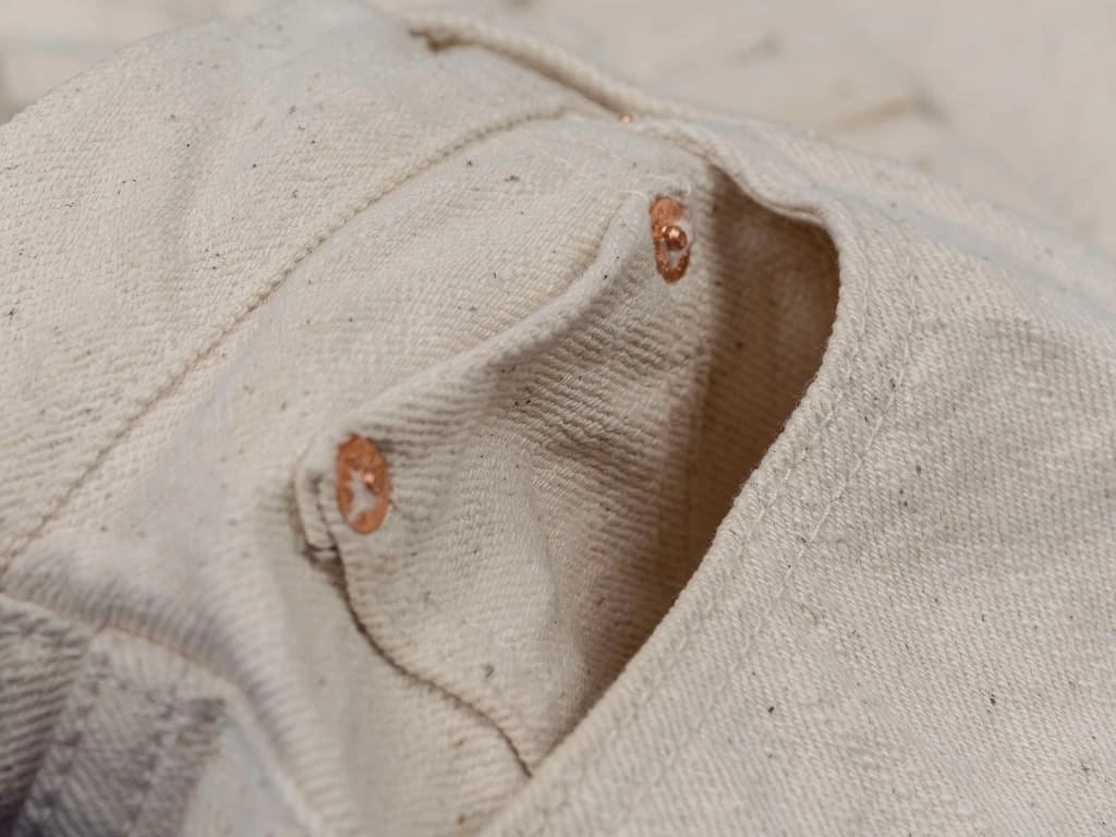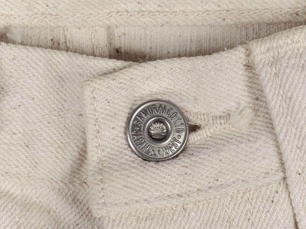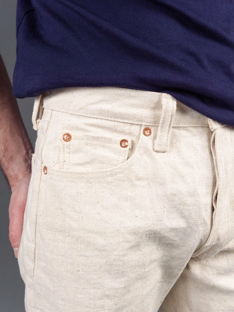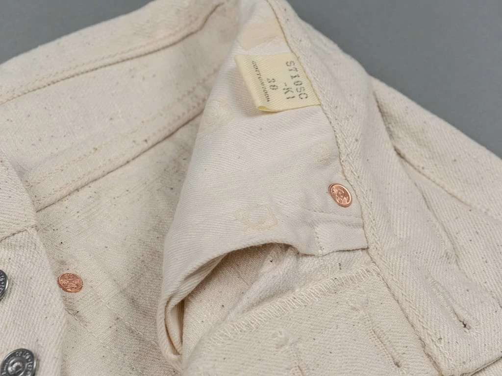 As the weather warms, you can start to pack away your darker denim, but that doesn’t mean leaving jeans behind altogether in the summer months. One good pair of lighter jeans will stand you in good stead for a spring-summer evening. This ecru undyed denim highlights all the natural hue of the proprietary Samurai Organic Cotton. It is one of the most beautiful and texturized Ecru fabrics we have ever seen.