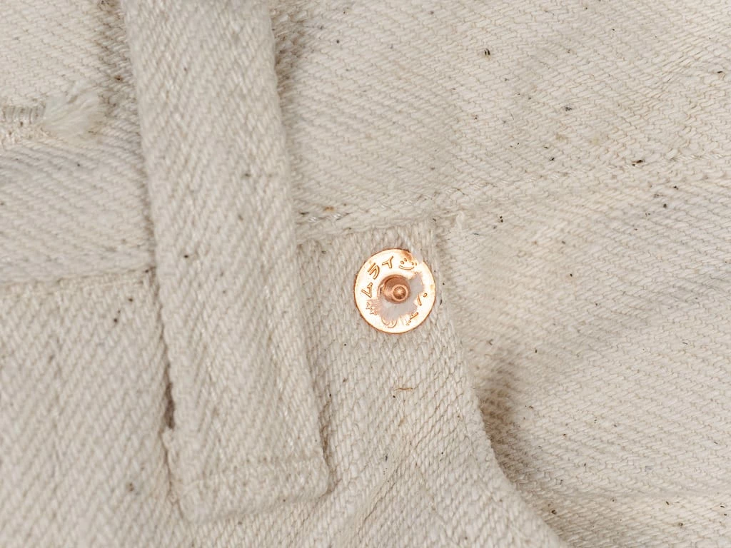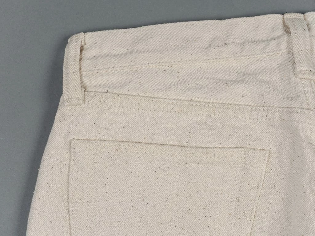 - 18oz unsanforized Ecru Japanese selvedge denim. It is a one-wash version so expect no shrinkage