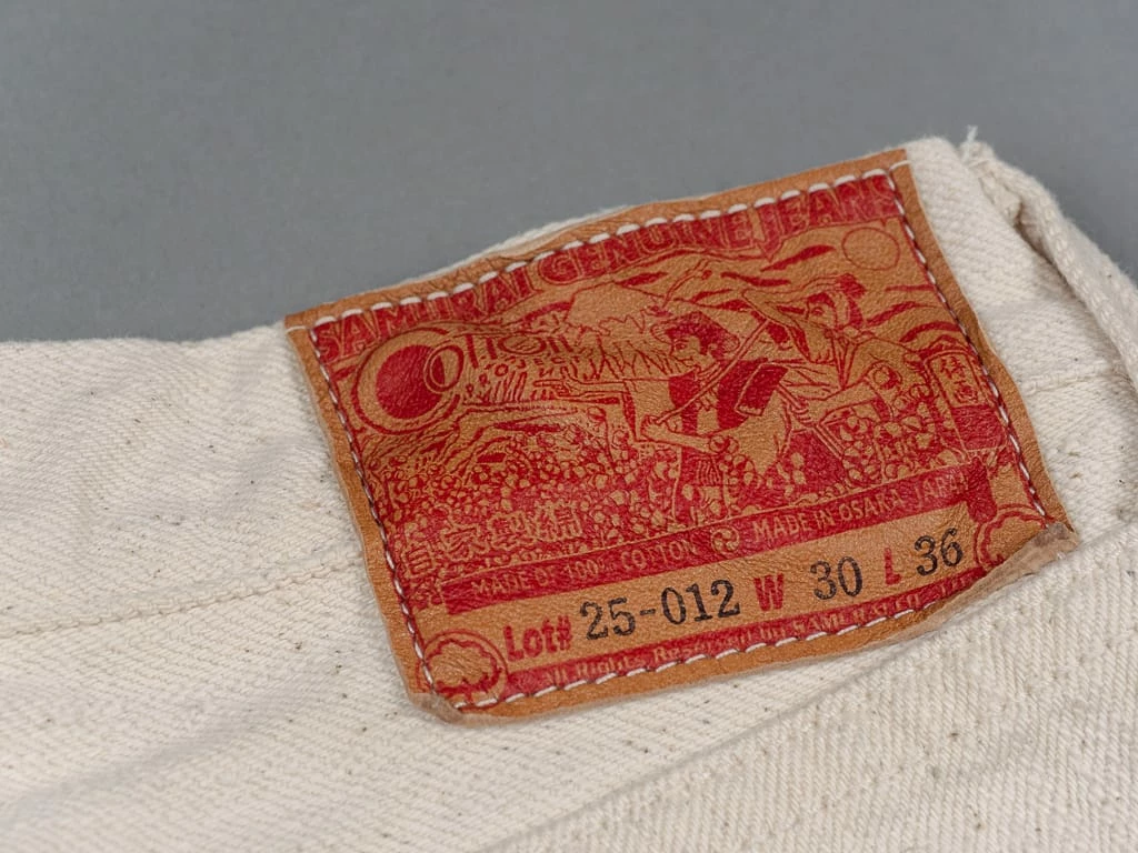 - Custom vegetable-tanned natural sheep leather patch (Samurai Cotton Project edition)