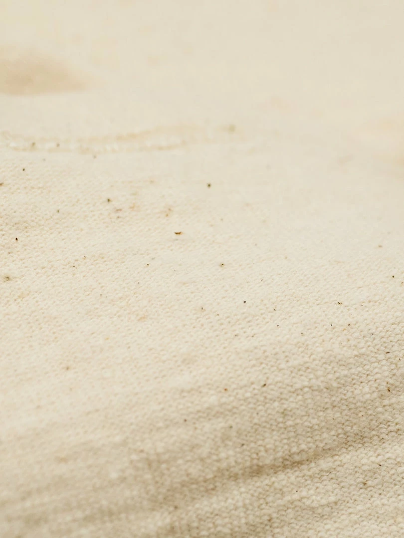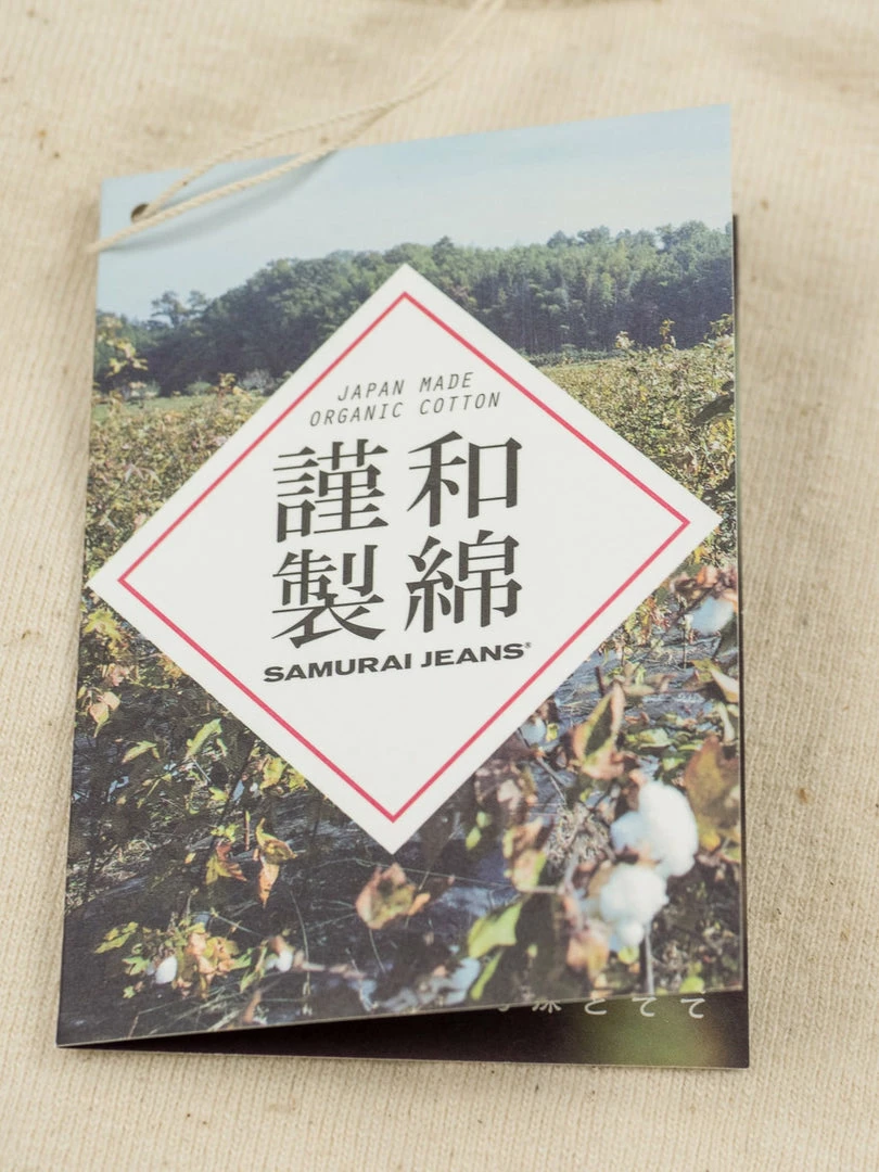 The Samurai Cotton project is the own obsession of Nogami-San, the Samurai Jeans owner, to produce garments with Japanese cotton. But what makes this Japanese cotton so unique? Well, it is plucked piece by piece carefully, and the team works around the typhoons and heavy rains that hit the Sasayama (Hyogo prefecture) area each fall. The plants are planted, weeded, and harvested by hand, refusing to use fertilizers or pesticides of any type. All work is done by a group of Samurai employees, a few dedicated customers, and a handful of friendly Sasayama locals. For this reason, producing t-shirts made of Samurai cotton is super expensive and time-consuming, but the result is an extremely soft and high-quality cotton.