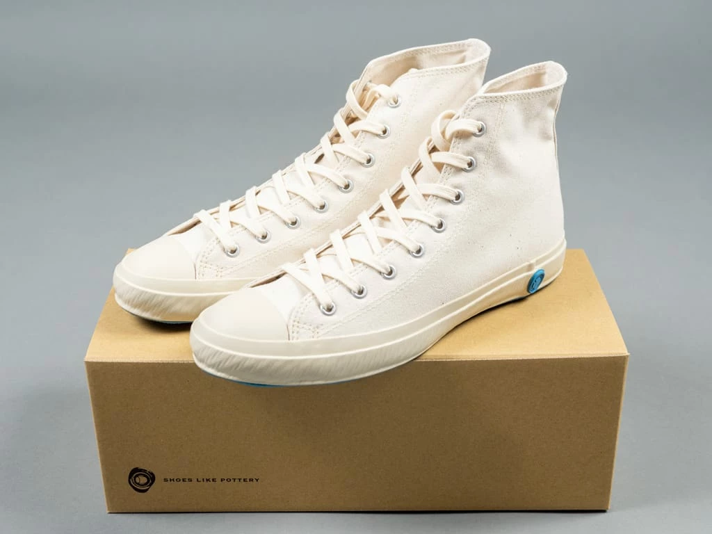 The Shoes Like Pottery High Sneakers have everything you could want from a made-in-Japan low-top sneaker. They feature the kiln-fired vulcanization that can only come from Kurume, Japan. Vulcanized shoes are durable, have a flexible sole and can maintain its shape. The fine quality that comes from this process can only be achieved by the hands of a skilled craftsman.