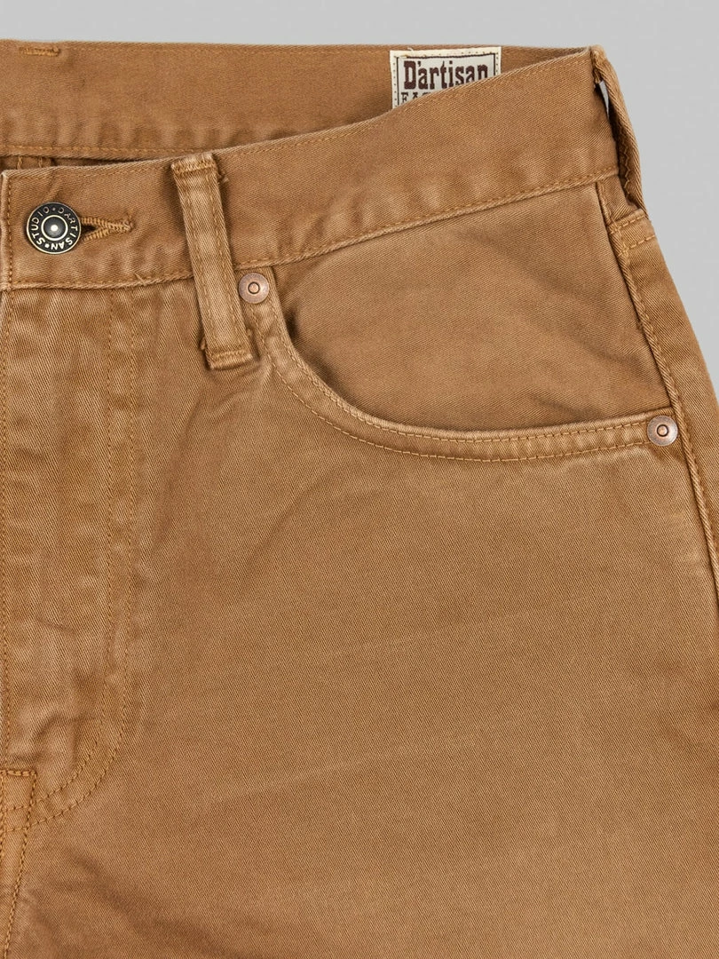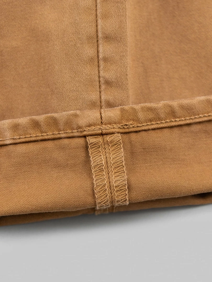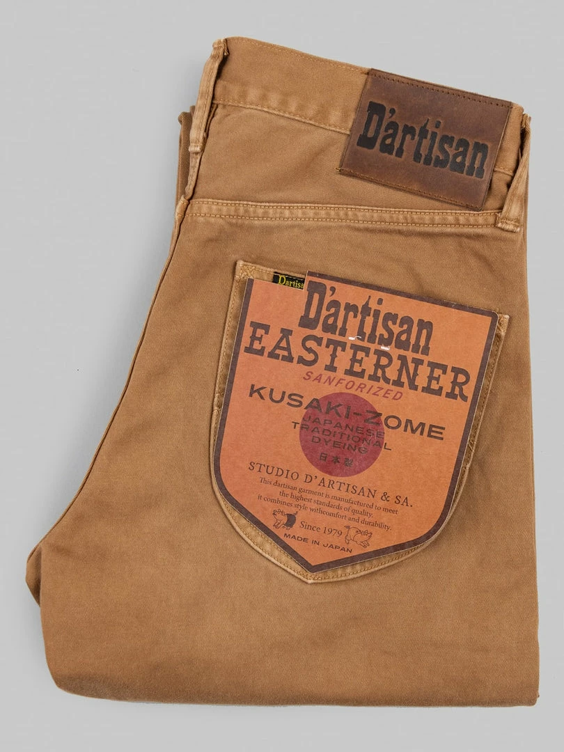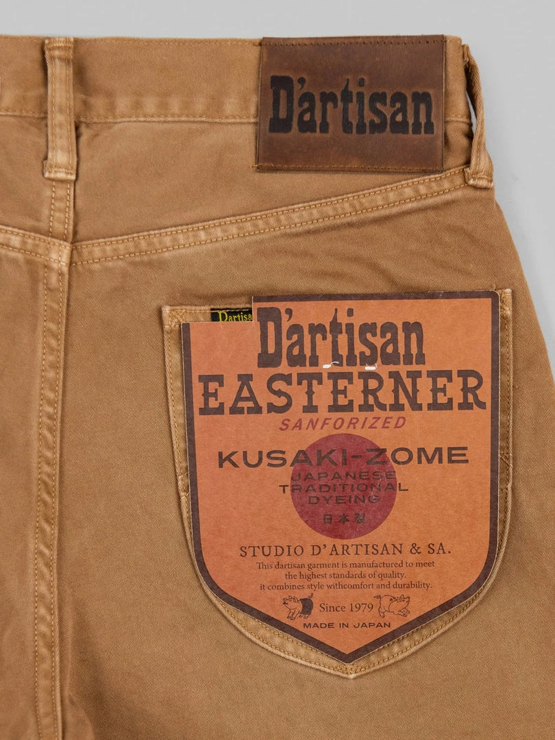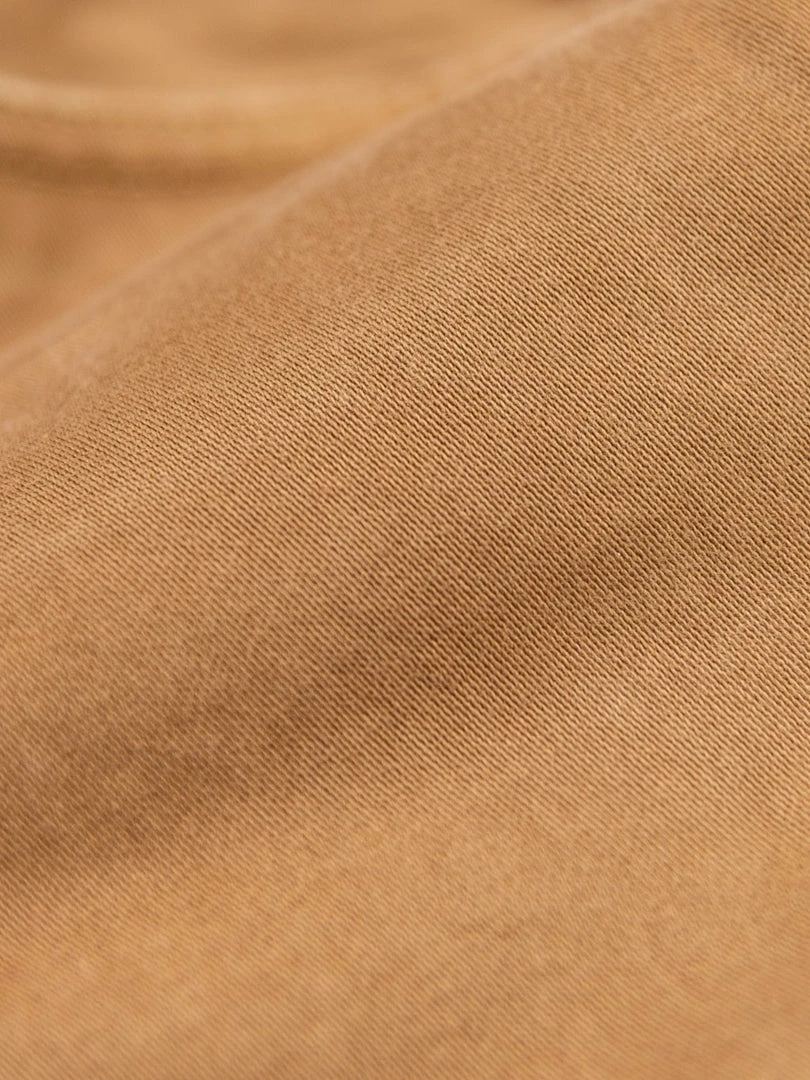 These lightweight jeans are one of the main pieces of this new Kusaki zome SS22 collection. They have been garment dyed with Kakishibu, an all-natural dye from the Heian period -more than 900 years ago- fermented from the juice of unripe persimmons to create the natural khaki coloured dye.