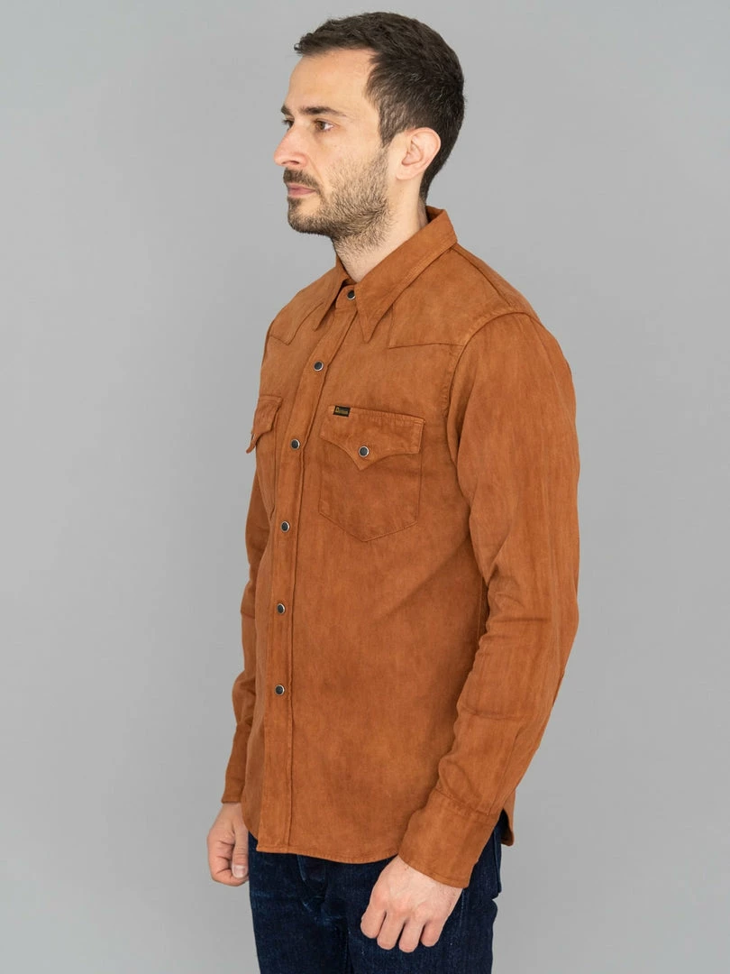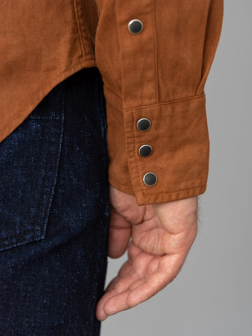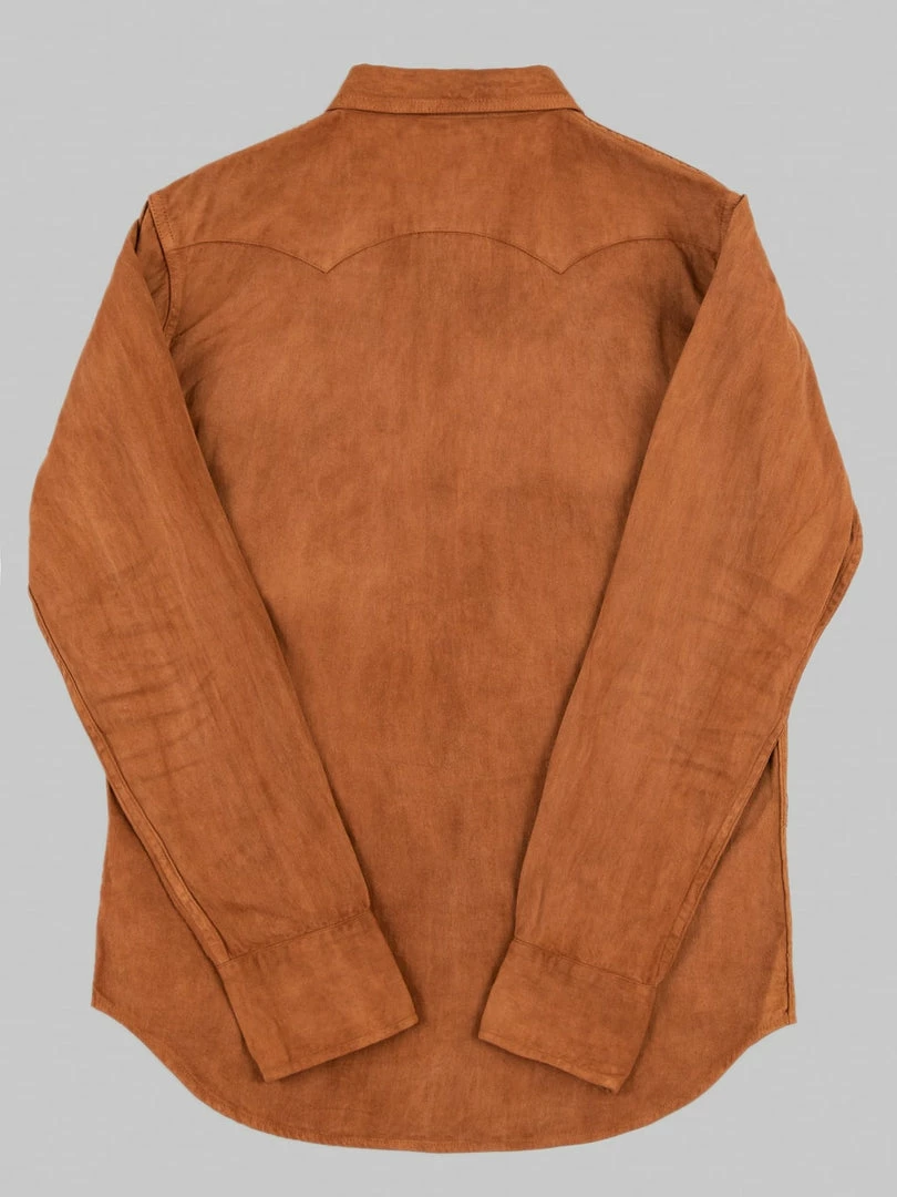 This is, undoubtedly, one of the most memorable western shirts we have ever seen. It is unique because it features a very traditional (1300-year old) and natural method of mud dyeing from Amami Oshima, a collection of islands north of Okinawa, that gives unique brown earthy colour to textiles.