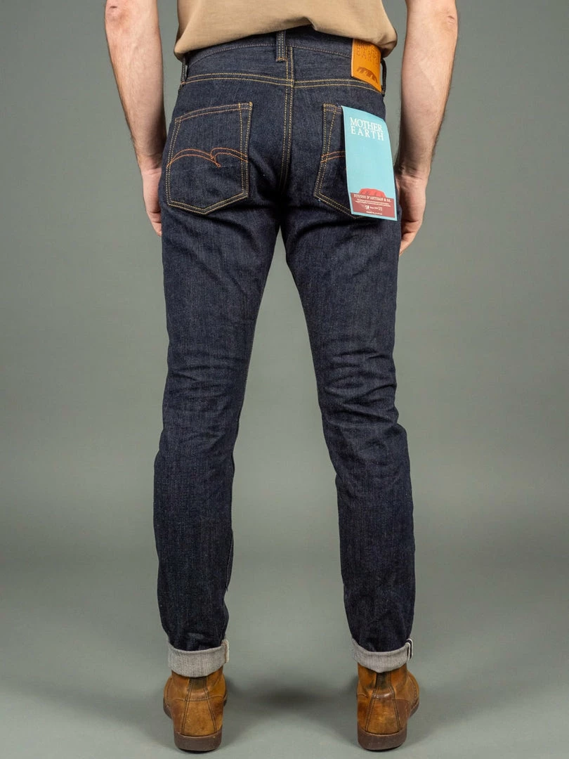 This Mother Earth denim fabric is woven using an old Toyoda G3 shuttle loom. The Toyoda automatic loom “G3” was first introduced half a century ago. As the earliest power loom in Japan, the maintenance can be challenging simply because there are no more new replacement parts available; when maintenance is needed, they can only replace the parts by gleaning the parts that are still functioning from the same models which are no longer in use. Besides, it has very low productivity as it weaves only 5 meters of fabrics per hour. However, G3 is the only machine that still weaves the same workwear-like denim that had a unique rough surface, yarn evenness and ruggedness as what it did half a century ago. Studio D’artisan is carrying on the legend of the earliest power loom “G3” and producing original denim with it.
