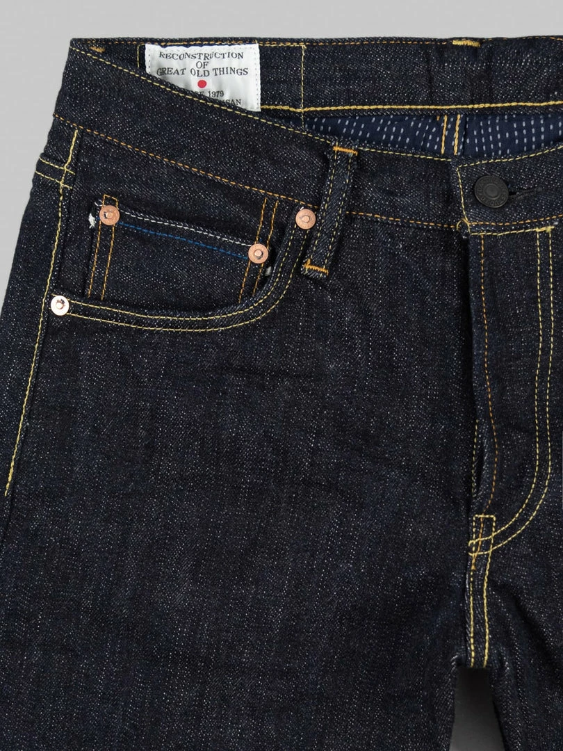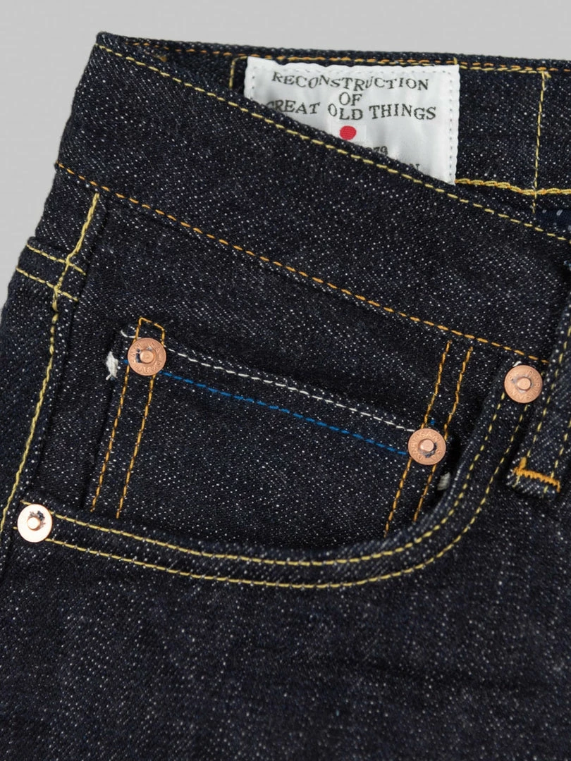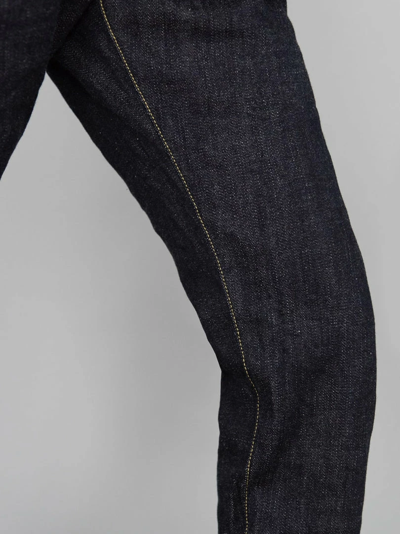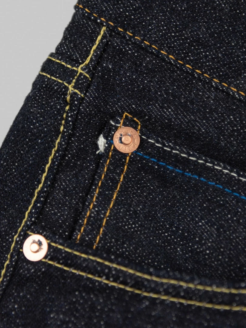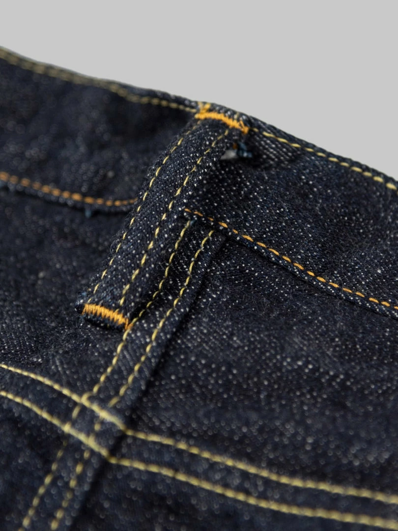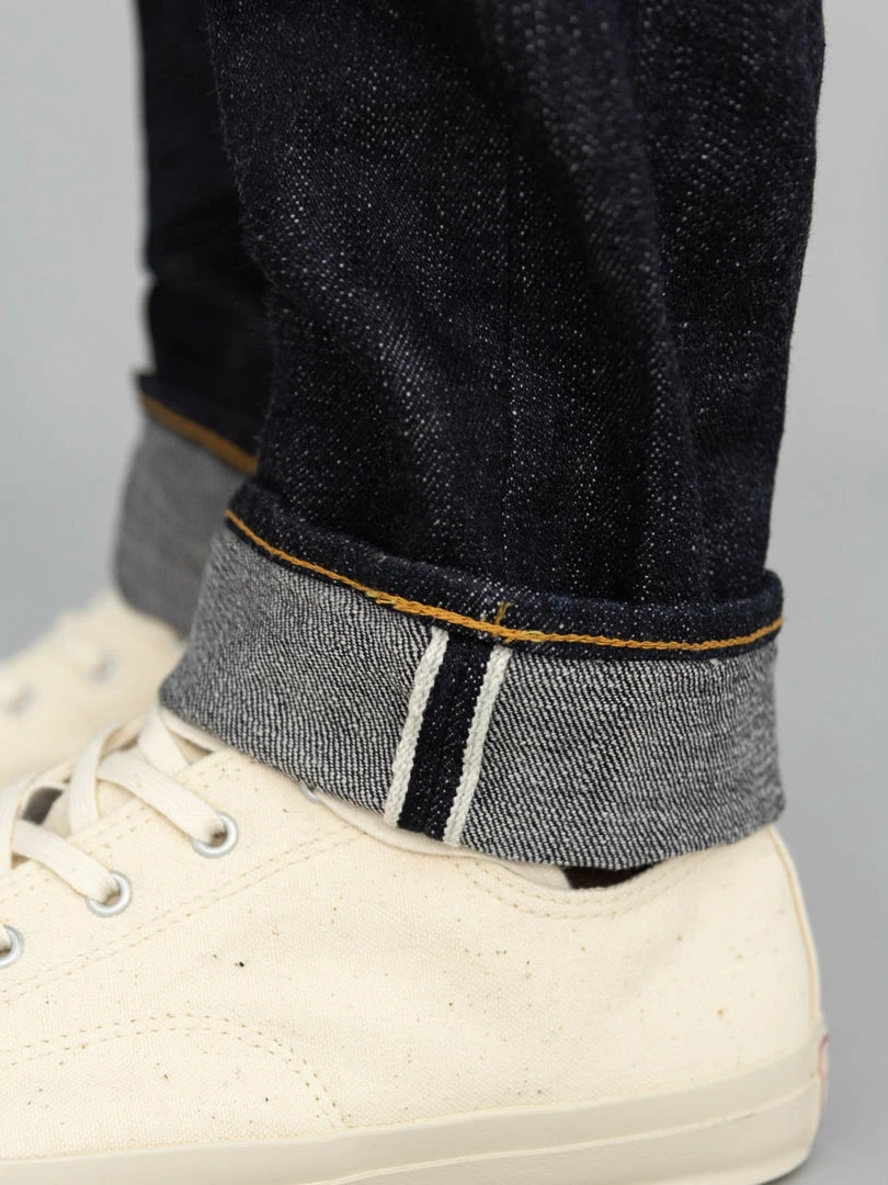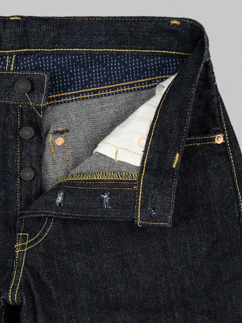 - 14oz unsanforized Japanese selvedge denim made of cotton and rayon kneaded with lava from Mt Fuji. It is a one-wash version so expect no shrinkage