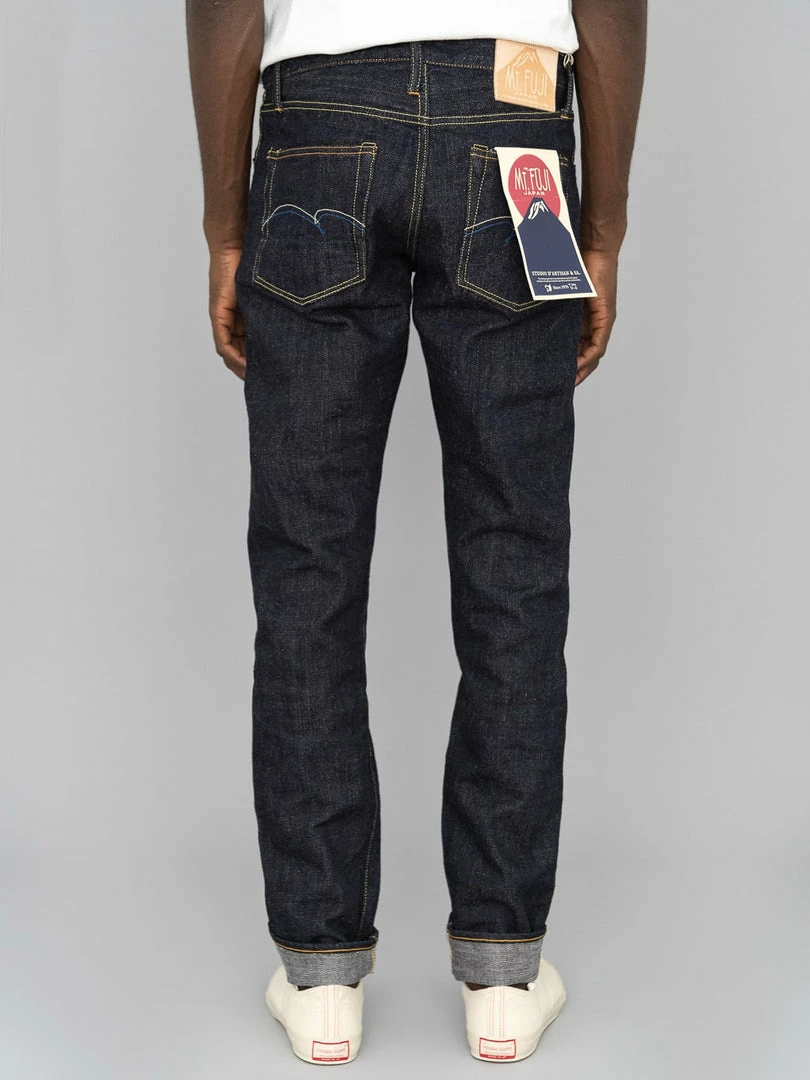 To closely match the rocky face of Mount Fuji, the weft features a grey colour, and the pockets and waistband lining use a unique “Yamagata” pattern sashiko that reminds us of Fuji snow peaks. This denim is as powerful and dignified as Mt Fuji, a world-class symbol of Japan.