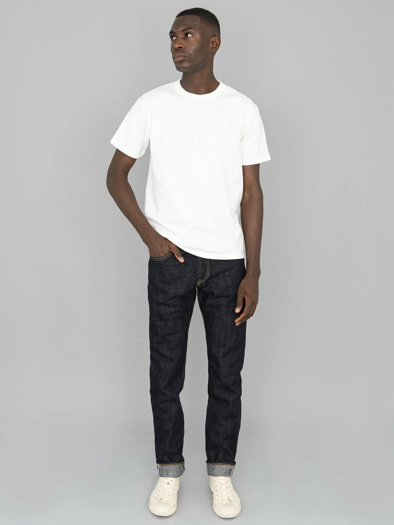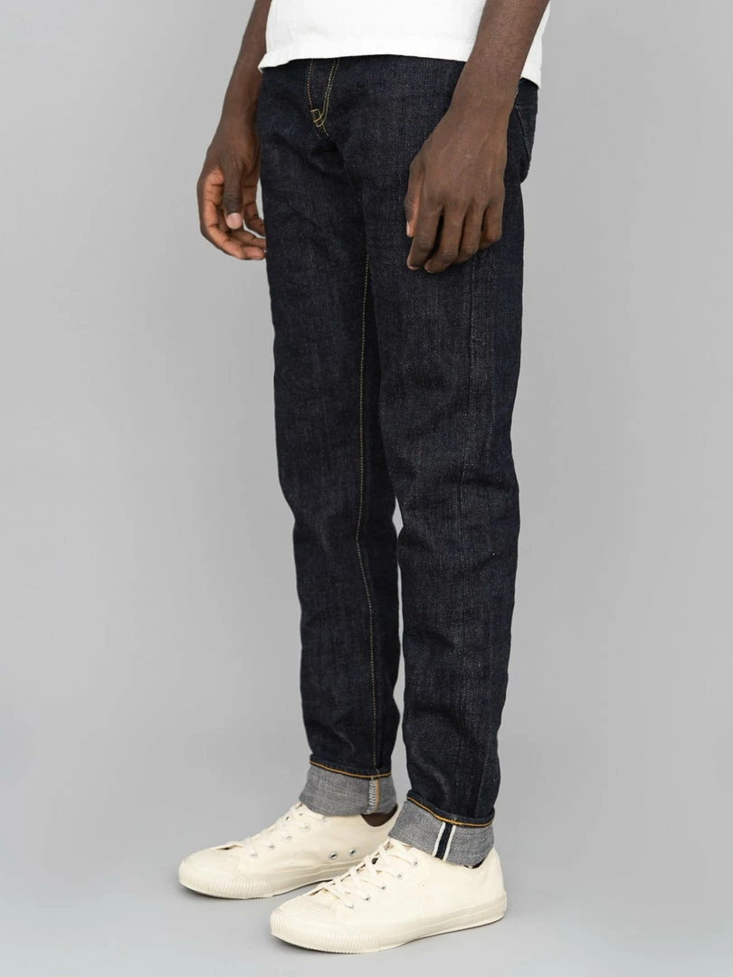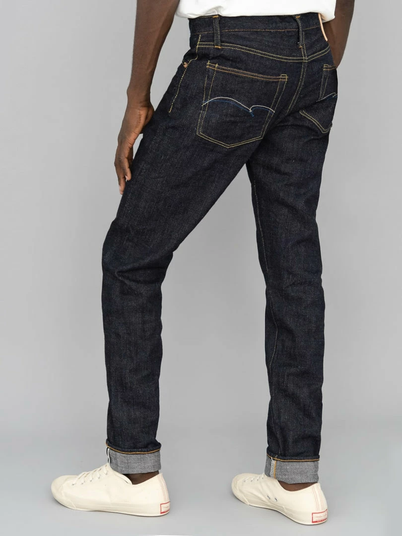 These jeans feature great details, such as an exclusive 3mm thick cowhide leather patch and branded blackened plated copper buttons. The Relaxed Tapered fit simple taper from the knee down with a close leg opening, still offering plenty of room in the thigh and top block with a mid-high rise.