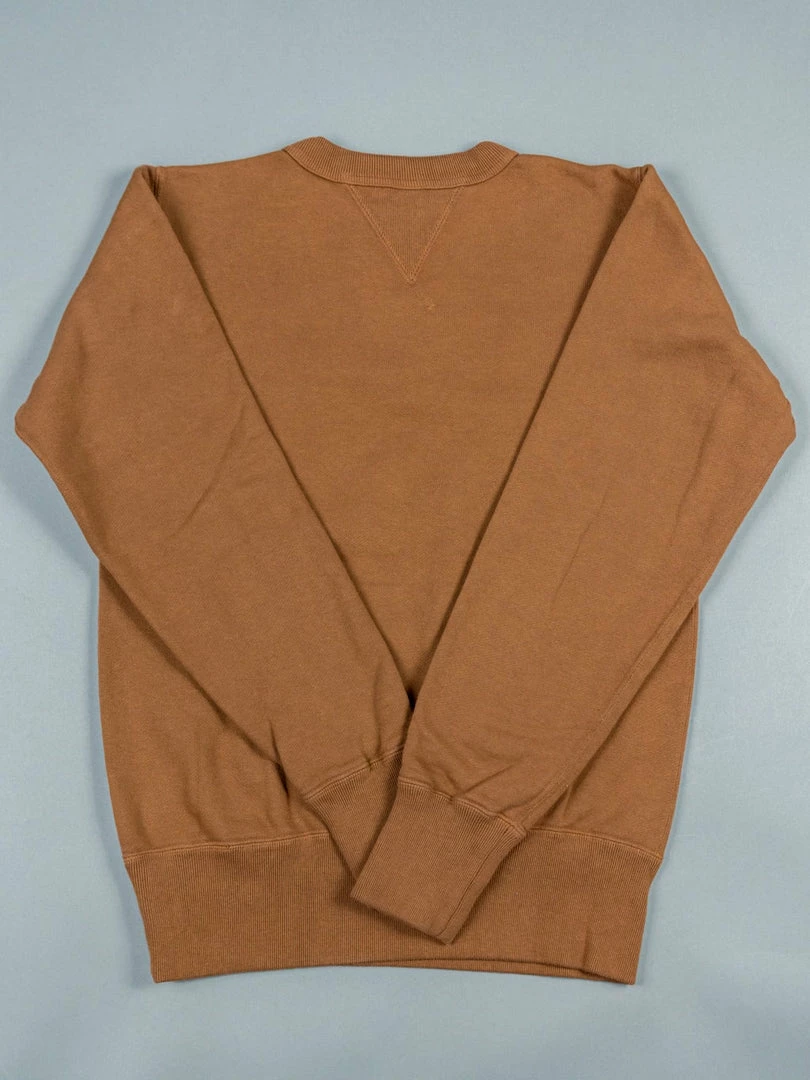 The sweatshirt has been woven with a sinker machine in Wakayama, Japan and features ribbed cuffs, hem and collar, V-neck and double-needle construction.