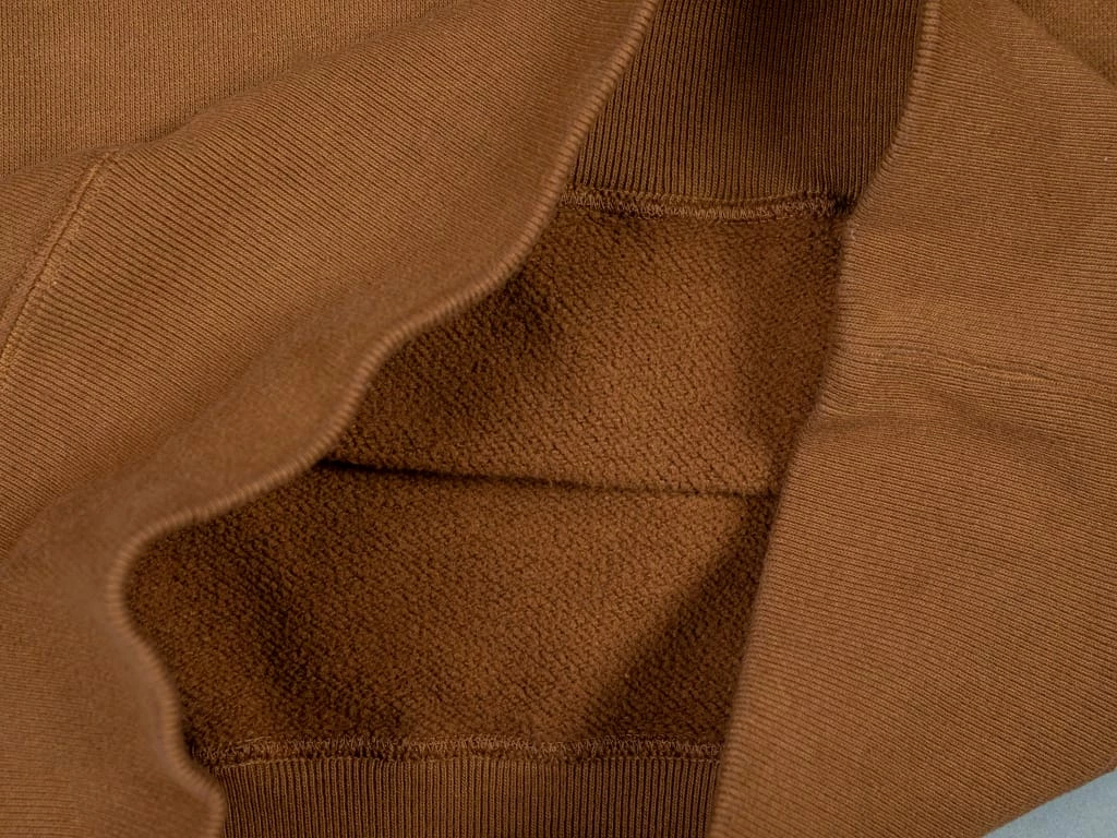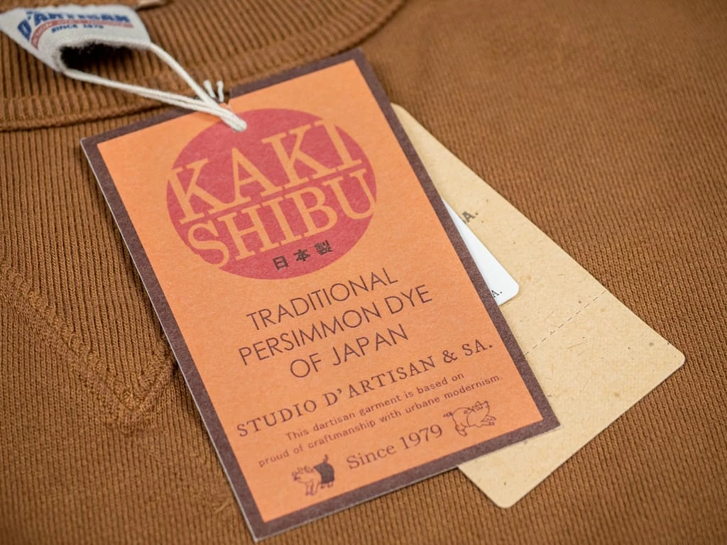 We’re excited to introduce the new Kakishibu series from Studio D’artisan made of garments dyed with traditional Japanese “Kakishibu” (Persimmon). The cotton yarns used in this fabric have been dyed with Kakishibu, an all-natural dye fermented from the juice of unripe persimmons in order to create the natural brown coloured dye. Given the labour intensive process of dyeing the yarns in a natural dye like Kakishibu, only a small production lot of these sweatshirts can be made.