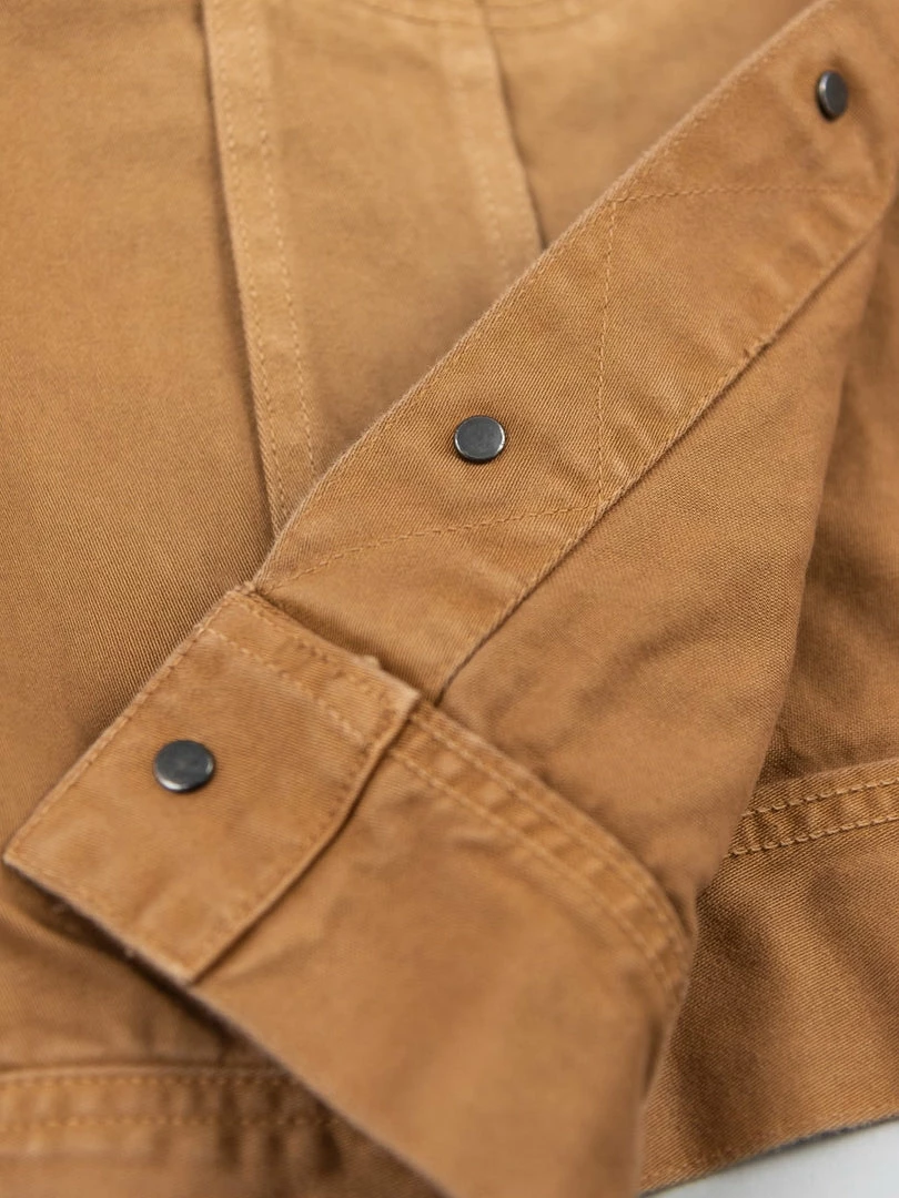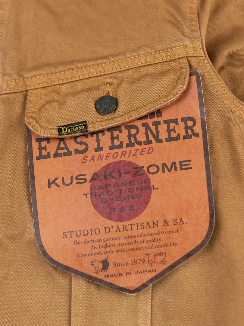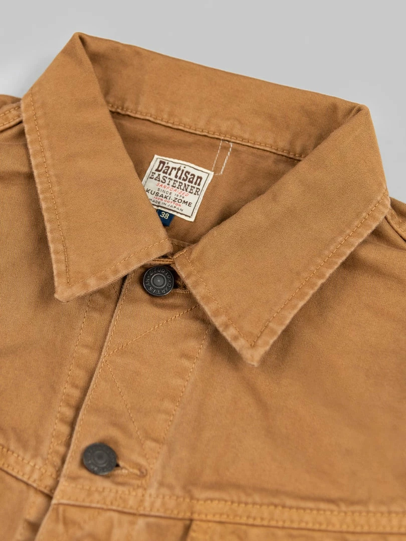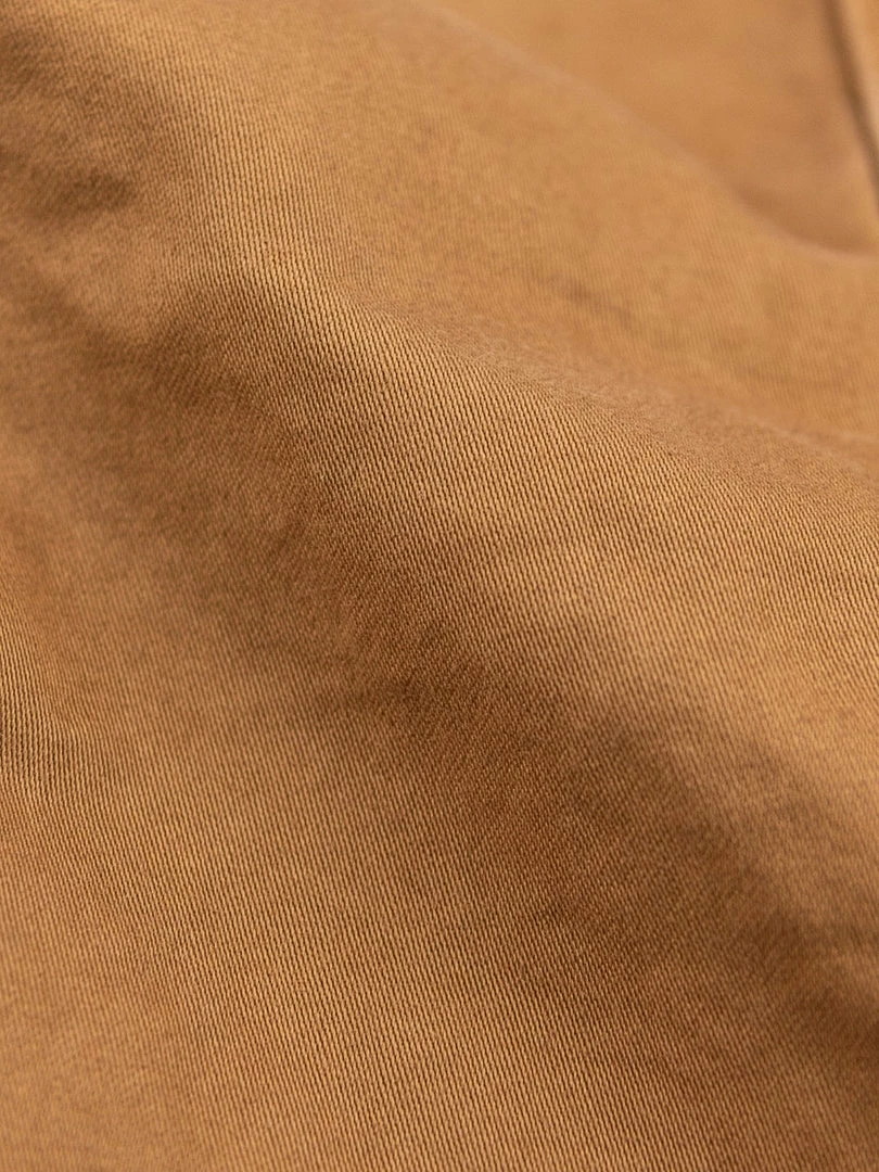 This lightweight jacket is one of the main pieces of this new Kusaki zome SS22 collection. It has been garment dyed with Kakishibu, an all-natural dye from the Heian period -more than 900 years ago- fermented from the juice of unripe persimmons to create the natural khaki coloured dye.