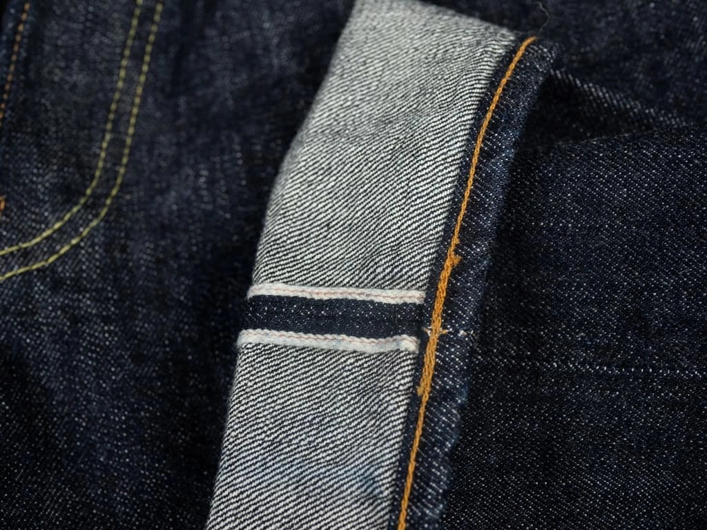 The fabric is a proprietary TCB unsanforized 13.5oz denim made of 100% Zimbabwe cotton. It has a slubby and irregular texture and the natural unevenness such as unstable thread thickness and irregular tense on the fabric made by a vintage loom, not by the mainstream methods of computer regulation.
