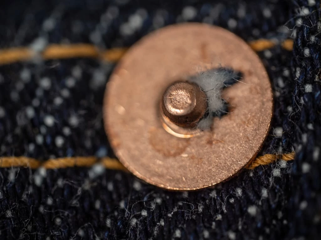 The trademark Zimbabwe cotton will show beautiful grain fades and TCB’s signature roping. The fades start showing as white dots appearing initially, and then each dots will get connected. As a result, it will show such beautiful vertical fades like authentic vintage pieces.