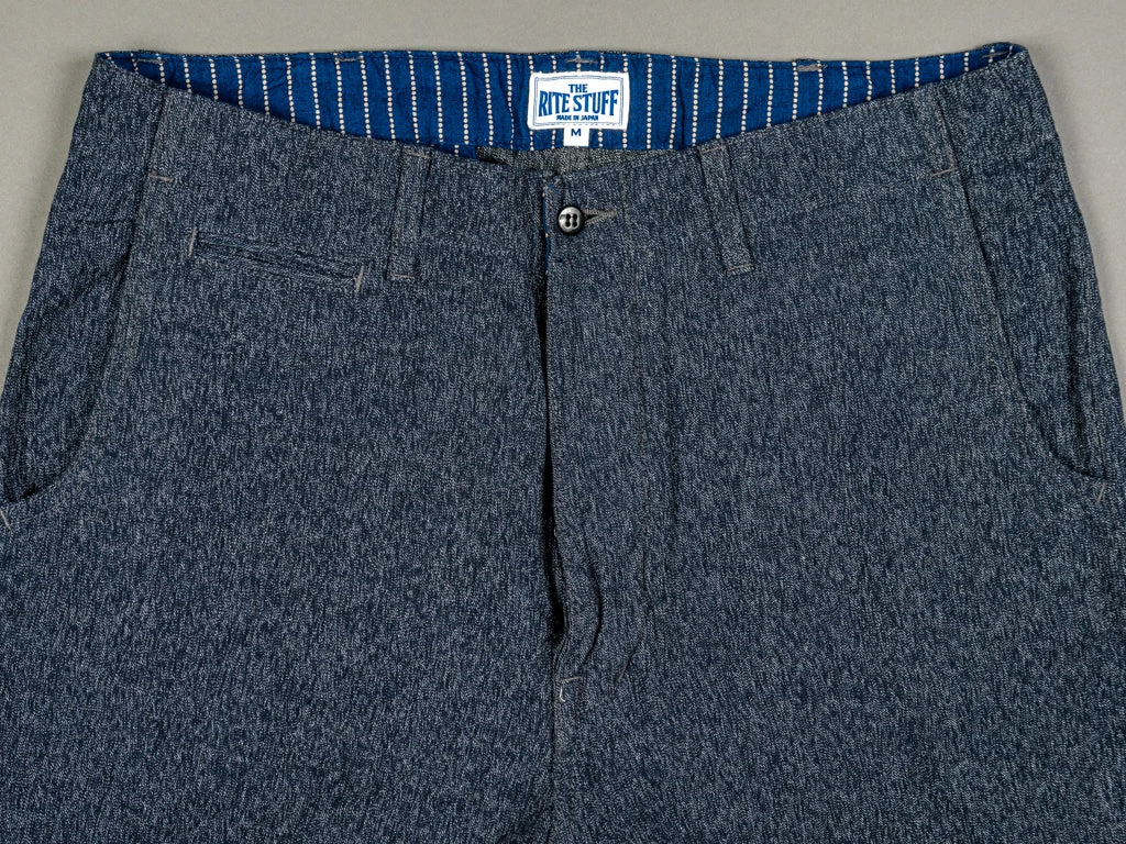- 10 oz. selvedge salt & pepper, indigo fabric, milled in Japan. The pants are pre-washed so expect no shrinkage