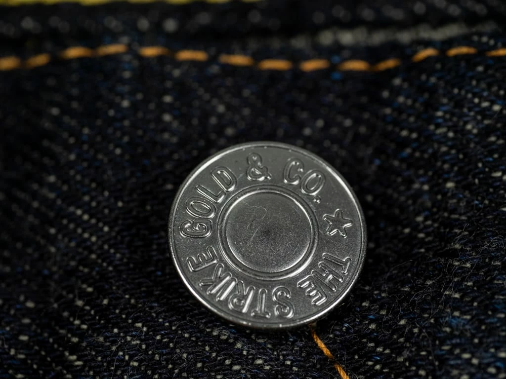 This model is full of details, including hidden rivets in the back pockets, a deer leather patch, custom iron male rivets, and copper female rivets. The male rivets will begin to oxidize over time, but the female ones will darken, providing an ageing aspect. Despite the fabric density, the fabric is very soft and comfortable. Thanks to the spectacular fade the denim acquires over the years, The Strike Gold jeans always achieve a unique character.