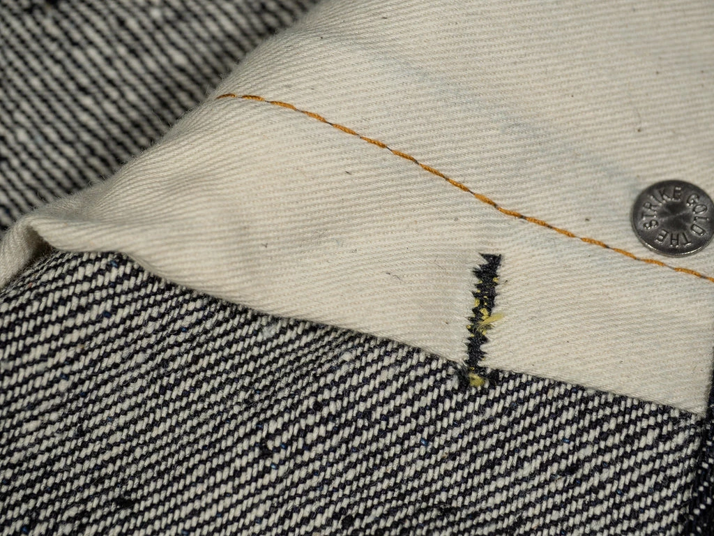 The “SG6109 super slubby” jeans are made of an unsanforized 16.5oz heavyweight slubby and neppy indigo dyed fabric. It is made from 100% Zimbabwe cotton, and Strike Gold have used a super short cotton staple for the weft to produce the material. The staple length refers to the length of the fibres of any given material. In terms of cotton, this is the average length within a sample of a species. Cotton with longer staple lengths tends to produce softer and hairier fabrics than those with shorter ones, but short-staple fabrics tend to have a fantastic rugged and extremely uneven touch.