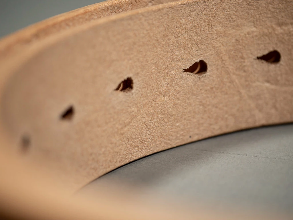 This is a cowhide leather belt with high resistance and flexibility in natural colour and with solid brass buckle. The leather has been cut and defined by hand by the master leather craftsman of The Strike Gold. This belt has a thick length of Italian leather of an approximate thickness of 5.5 mm, which guarantees unparalleled durability. Italian leather is made of cowhide, but this is just the first step. Special traditional leather craftsmanship techniques are used. The tanning methods are natural, using vegetable ingredients. That’s why Italian leather is so resistant, elastic and smooth. And last but not least the special nuances that make this kind of leather immediately recognizable and unique.
