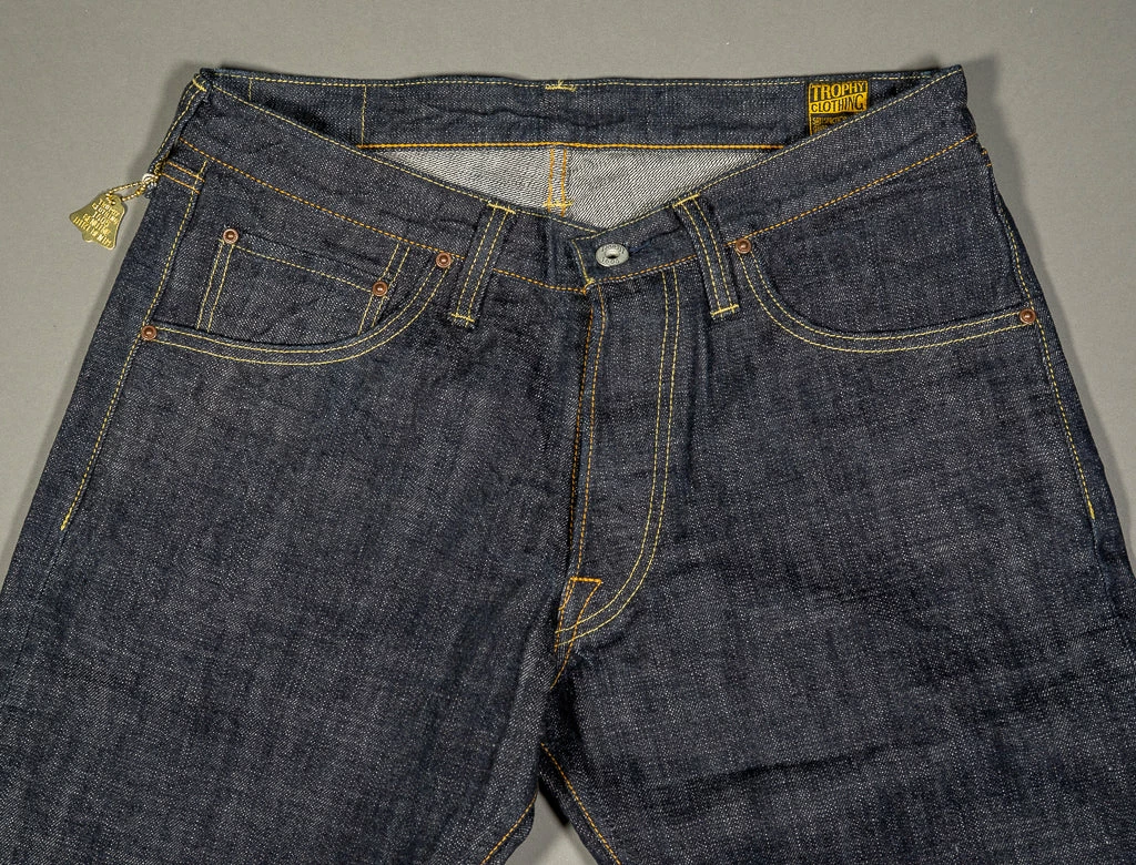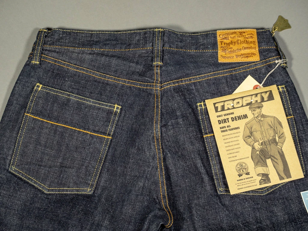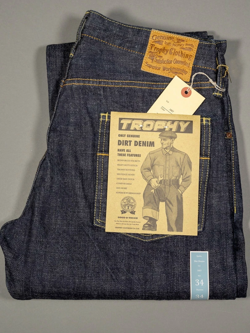 Trophy Clothing “Dirt Denim” jeans are made of unsanforized 14.5oz indigo rope dyed fabric with several indigo dips, producing a rustic brown-indigo colour. They are made by a 75-year-old craftsman mandated with producing the denim fabric. He performs meticulous work in Okayama City, Japan, using an old Toyoda G3 shuttle loom. The Toyoda automatic loom “G3” was first introduced half a century ago. As the earliest power loom in Japan, the maintenance can be extremely difficult simply because there are no more new replacement parts available; when maintenance is needed, they can only replace the parts by gleaning the parts that are still functioning from the same models which are no longer in use. Besides, it has very low productivity as it weaves only 5 meters of fabrics per hour. However, G3 is the only machine that still weaves the same workwear-like denim that had a unique rough surface, yarn evenness and ruggedness as what it did half a century ago.