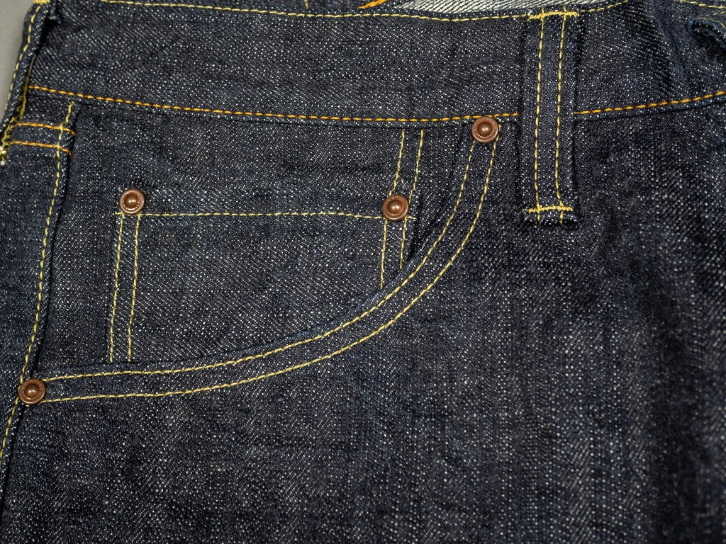 - 14.5oz unsanforized Japanese selvedge denim. It is a one-wash version so expect almost no shrinkage