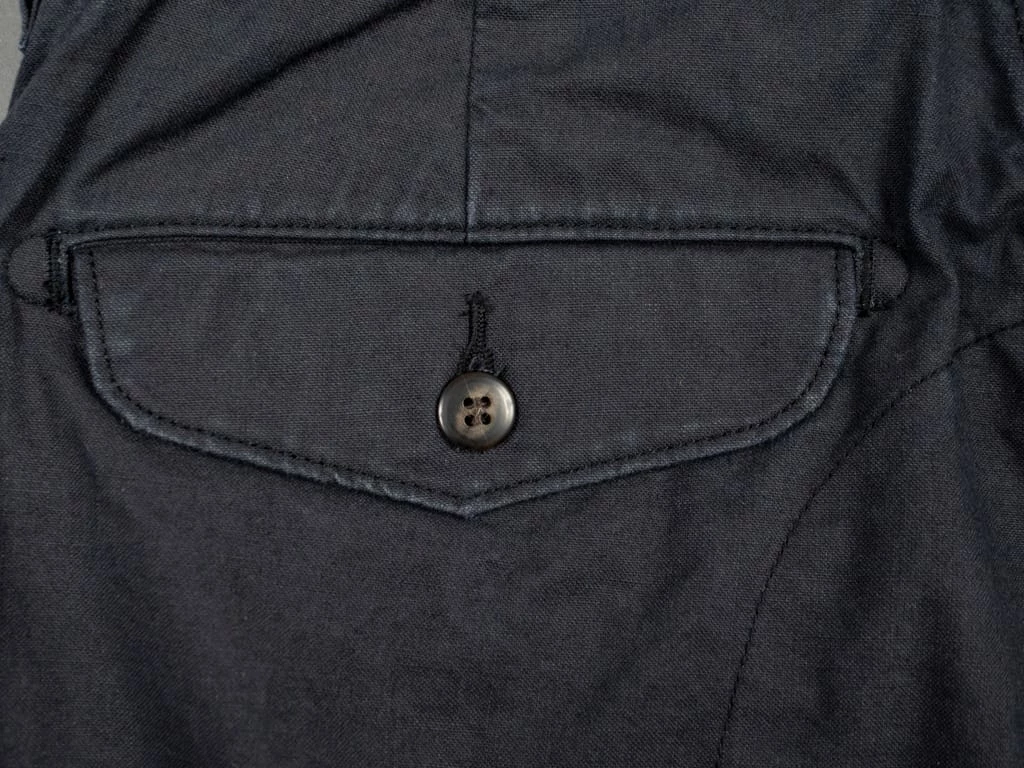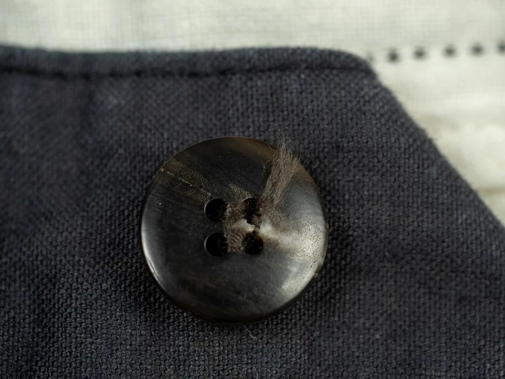 The fabric has been sulfur dyed, and the buffalo horn buttons are made from natural material from cow’s and buffalo’s horn.