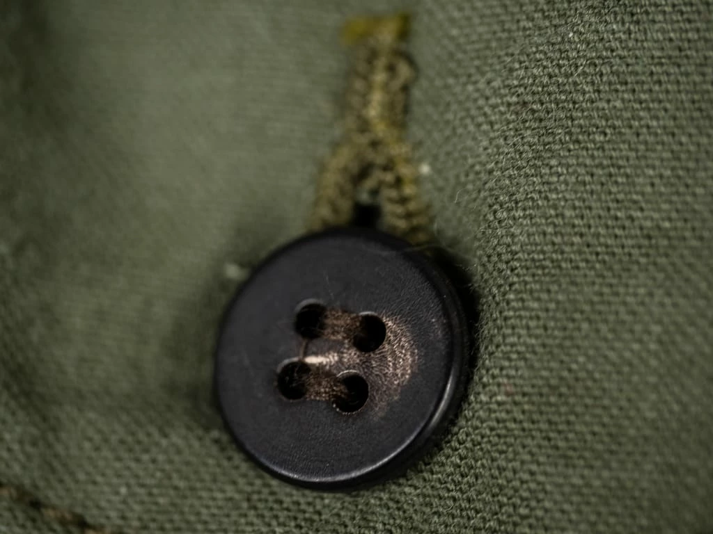 The fabric has been sulfur dyed, and the buffalo horn buttons are made from natural material from cow’s and buffalo’s horn.