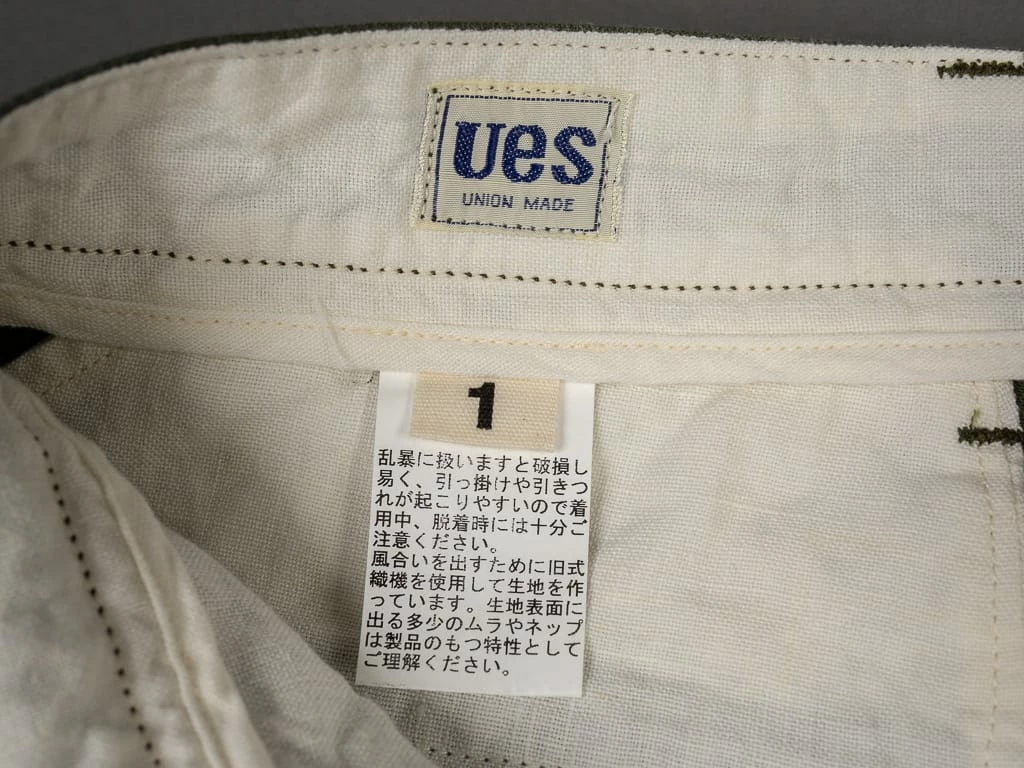 The construction is simply unbeatable. The interior has been patched by high-quality Japanese linen to power up the strength of texture in the crotch, waist and pockets. The fabric is already tough enough, but UES still enhanced them by triple stitching and reinforced fabrics. They are also tough enough for repeat washing, and the shape doesn’t even collapse at all.